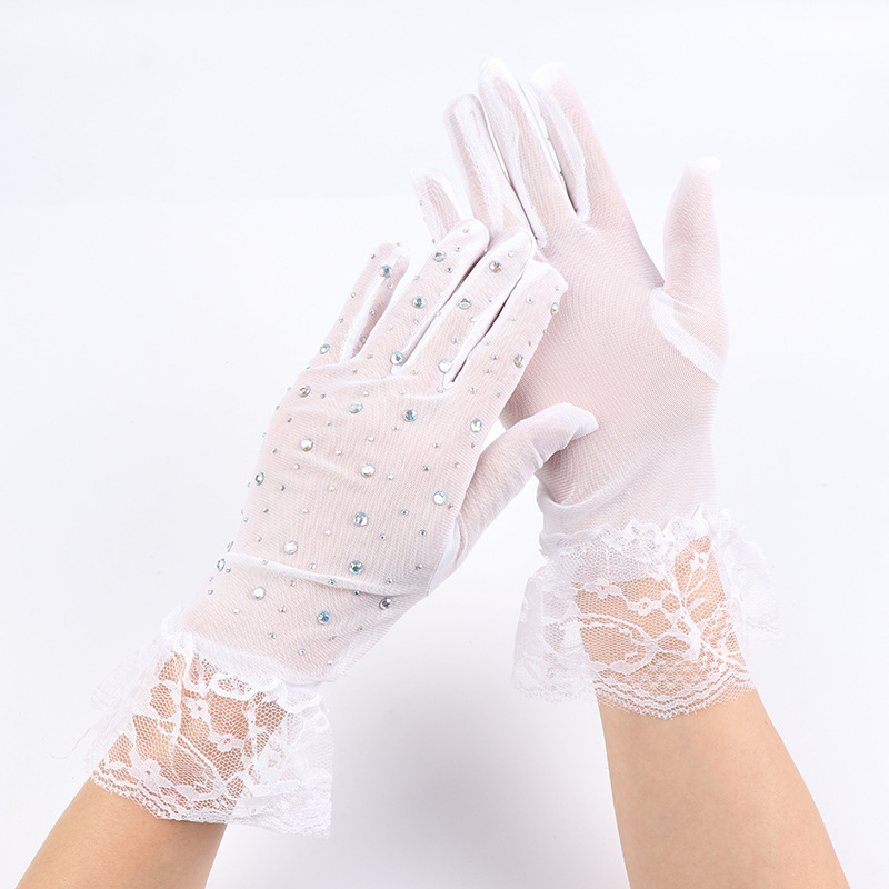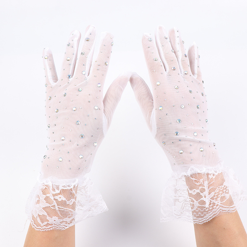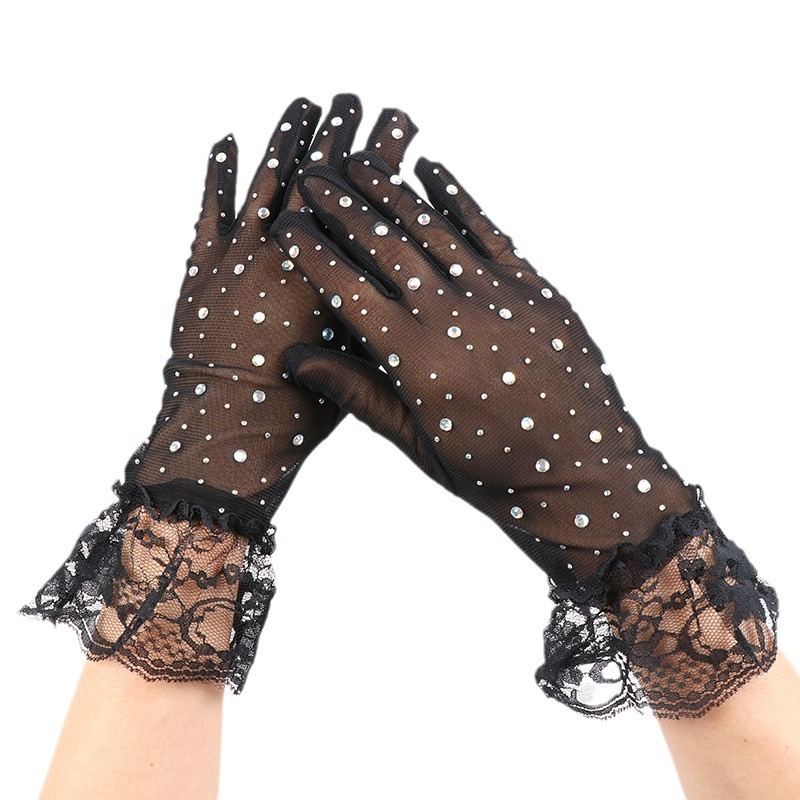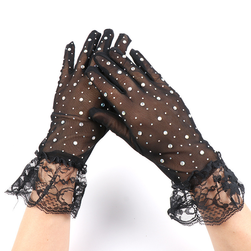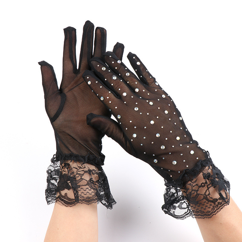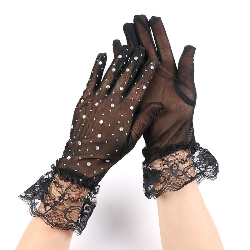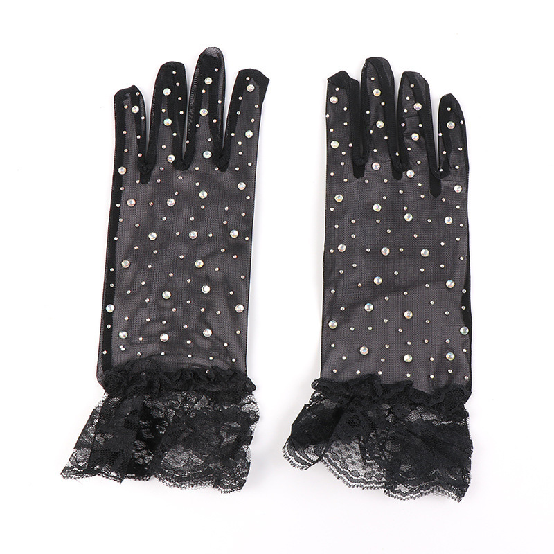 halloween new net yarn glove diamond five finger oversleeves elegant retro fashion lace wholesale 中文版