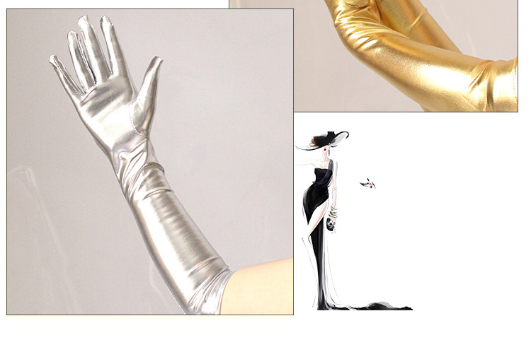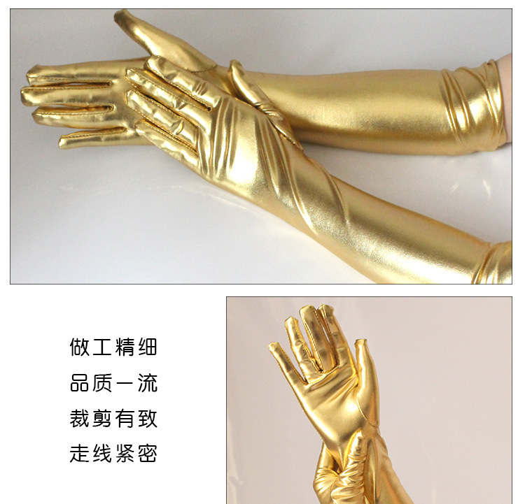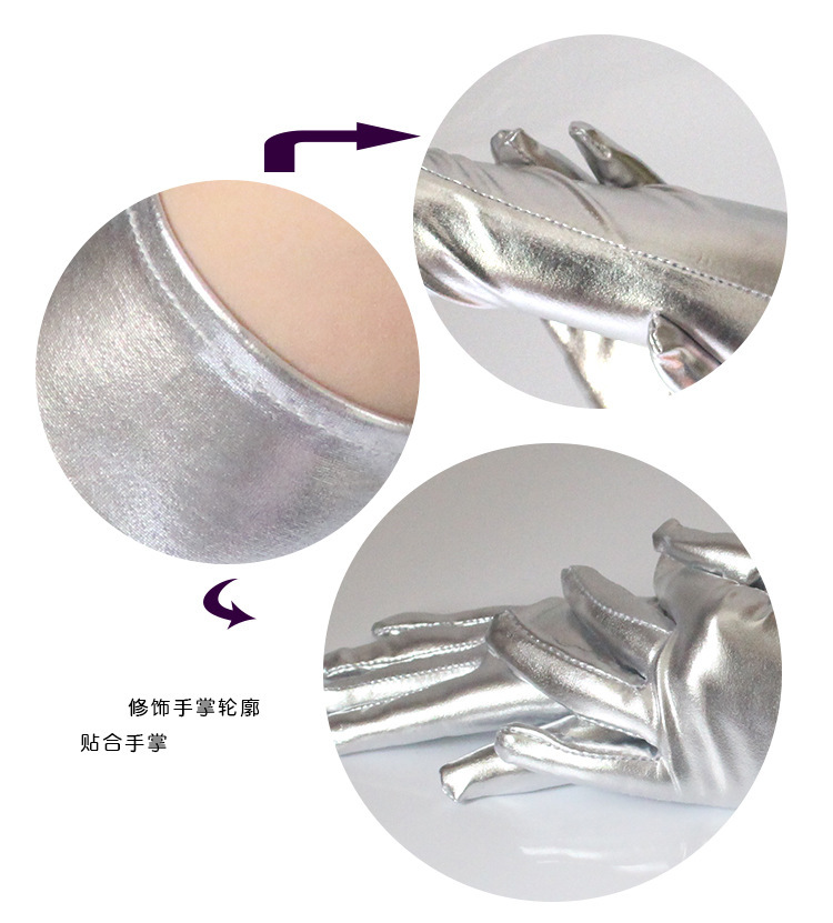 patent leather gloves sexy coated gloves gold and silver color bright leather sleeve cover steel pipe stage gloves for performance wholesale 中文版