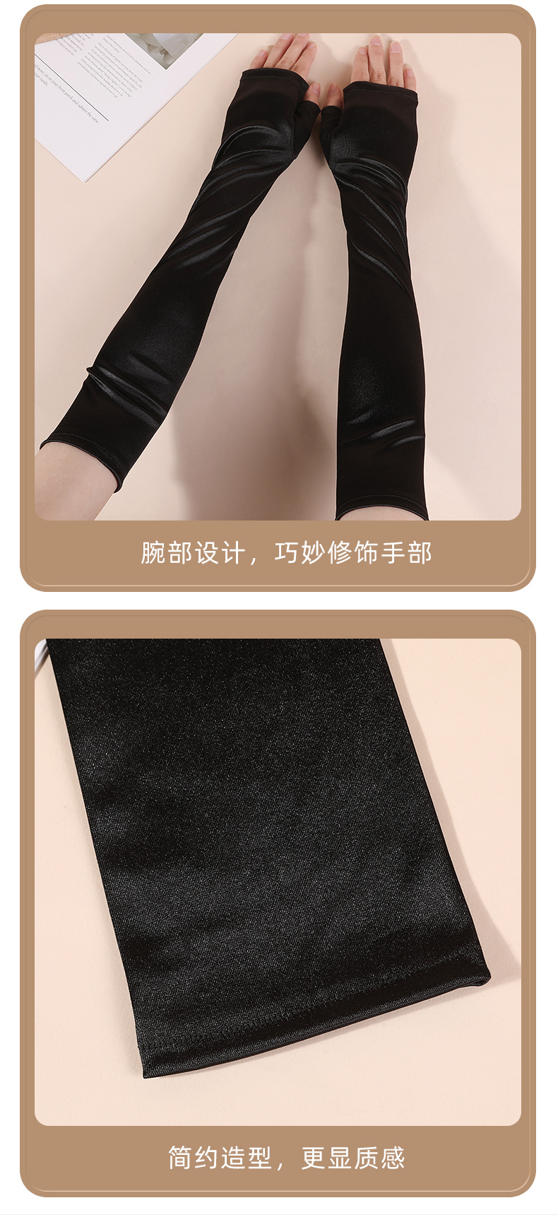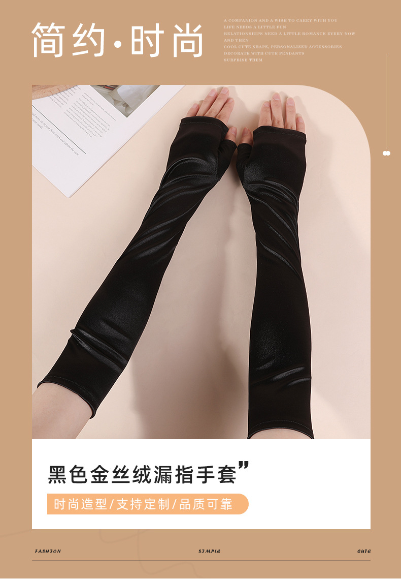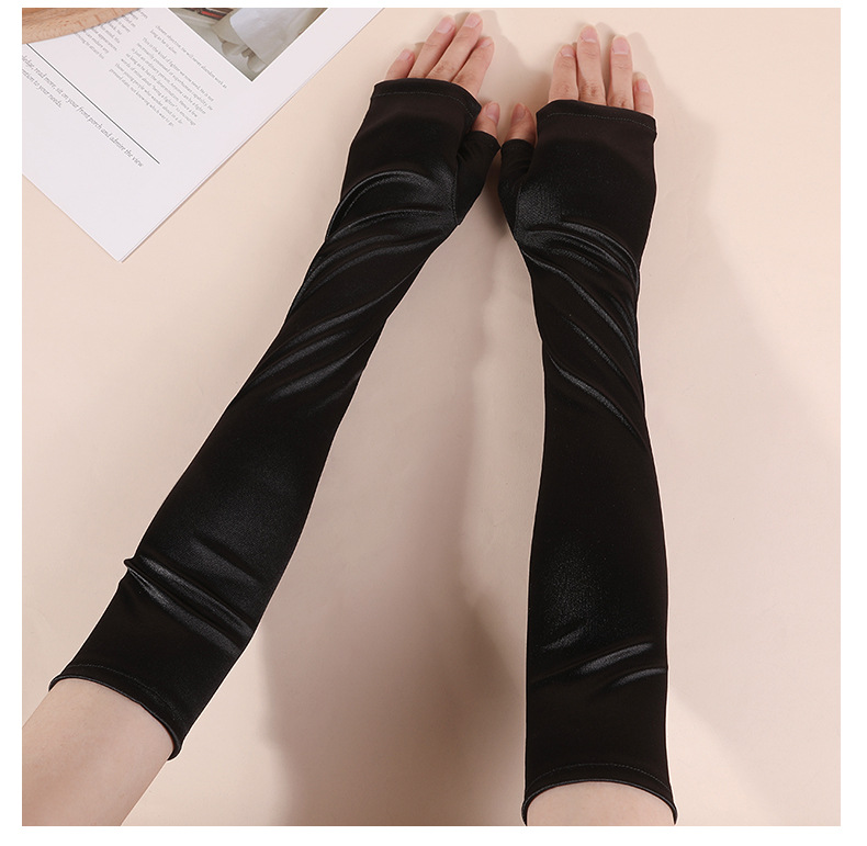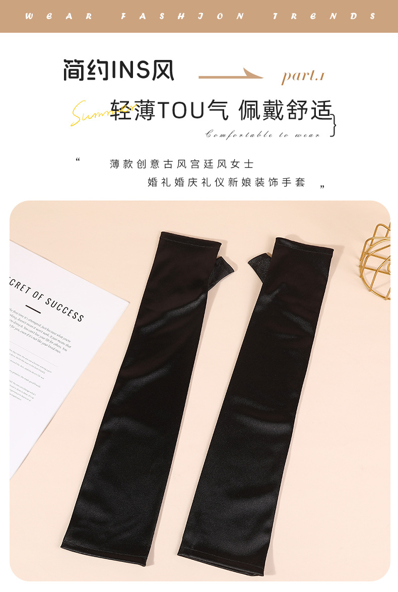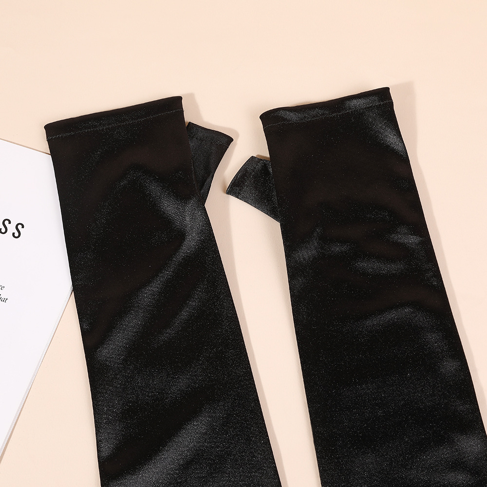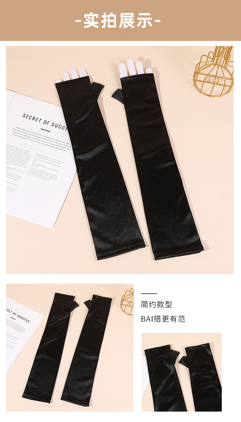 halloween new satin satin satin sleeve cover black elegant retro fingerless gloves performance dress matching gloves 中文版