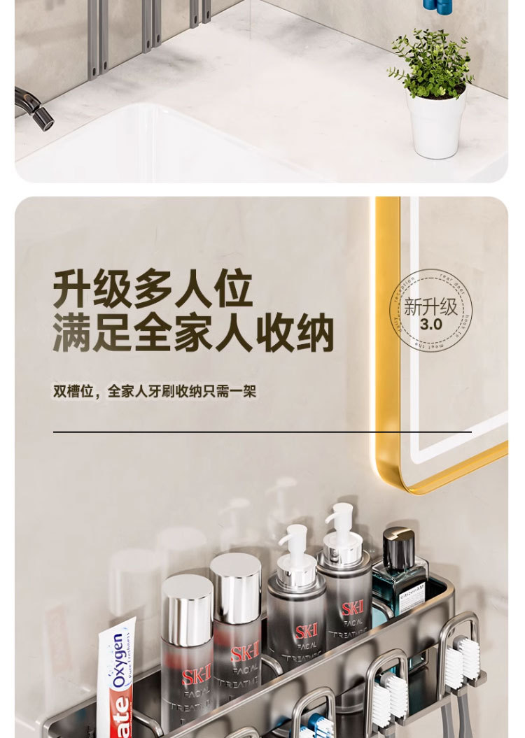 gun gray toothbrush holder for six people (removable cleaning)