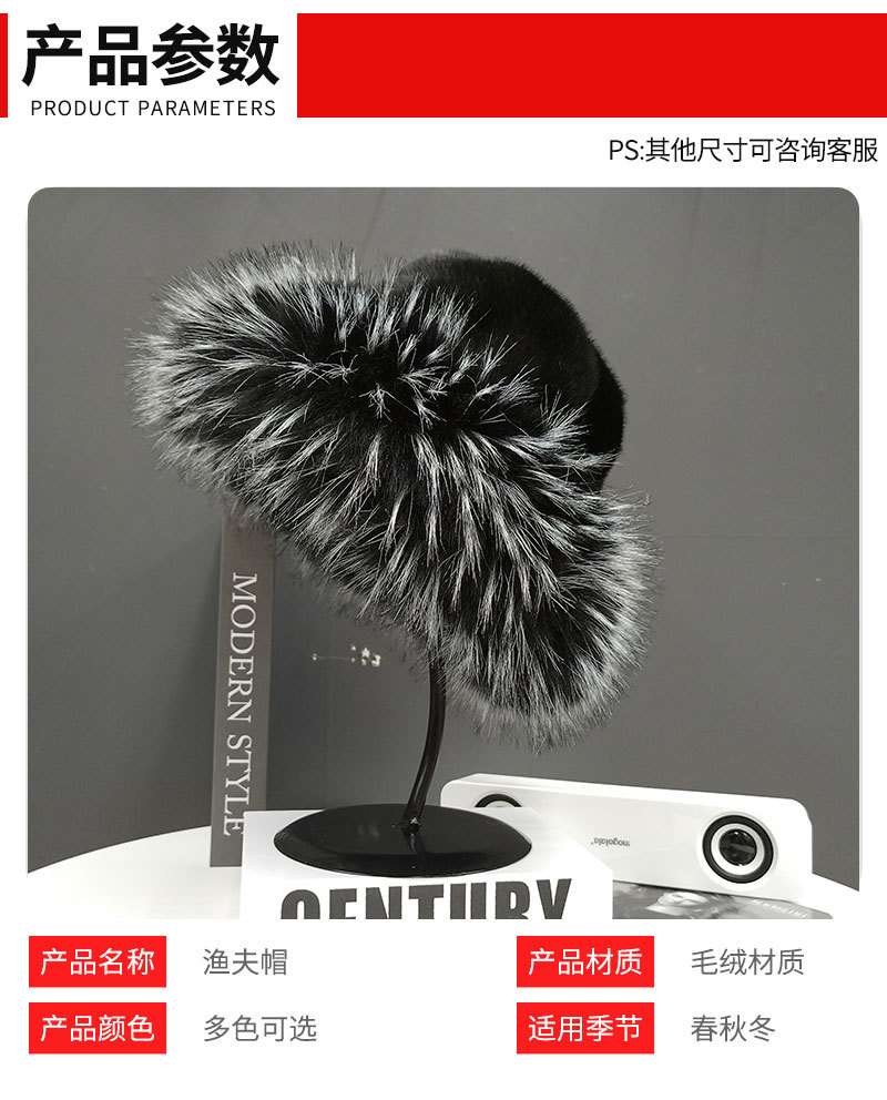 Fake fur raccoon fur Mongolian hat eco-friendly hair thick winter and fall warm fisherman's hat cross-border trade