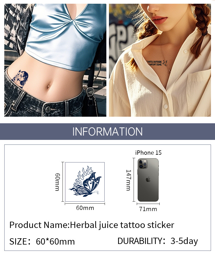 cross-border new arrival small size herbal juice tattoo sticker waterproof semi-permanent trendy men and women ins style tattoo sticker paper 中文版