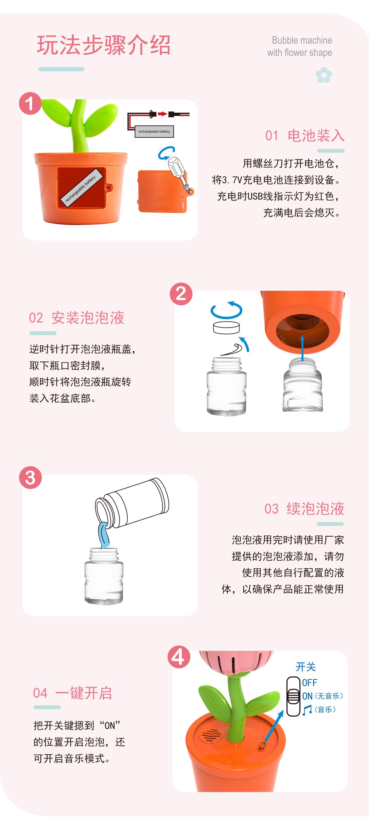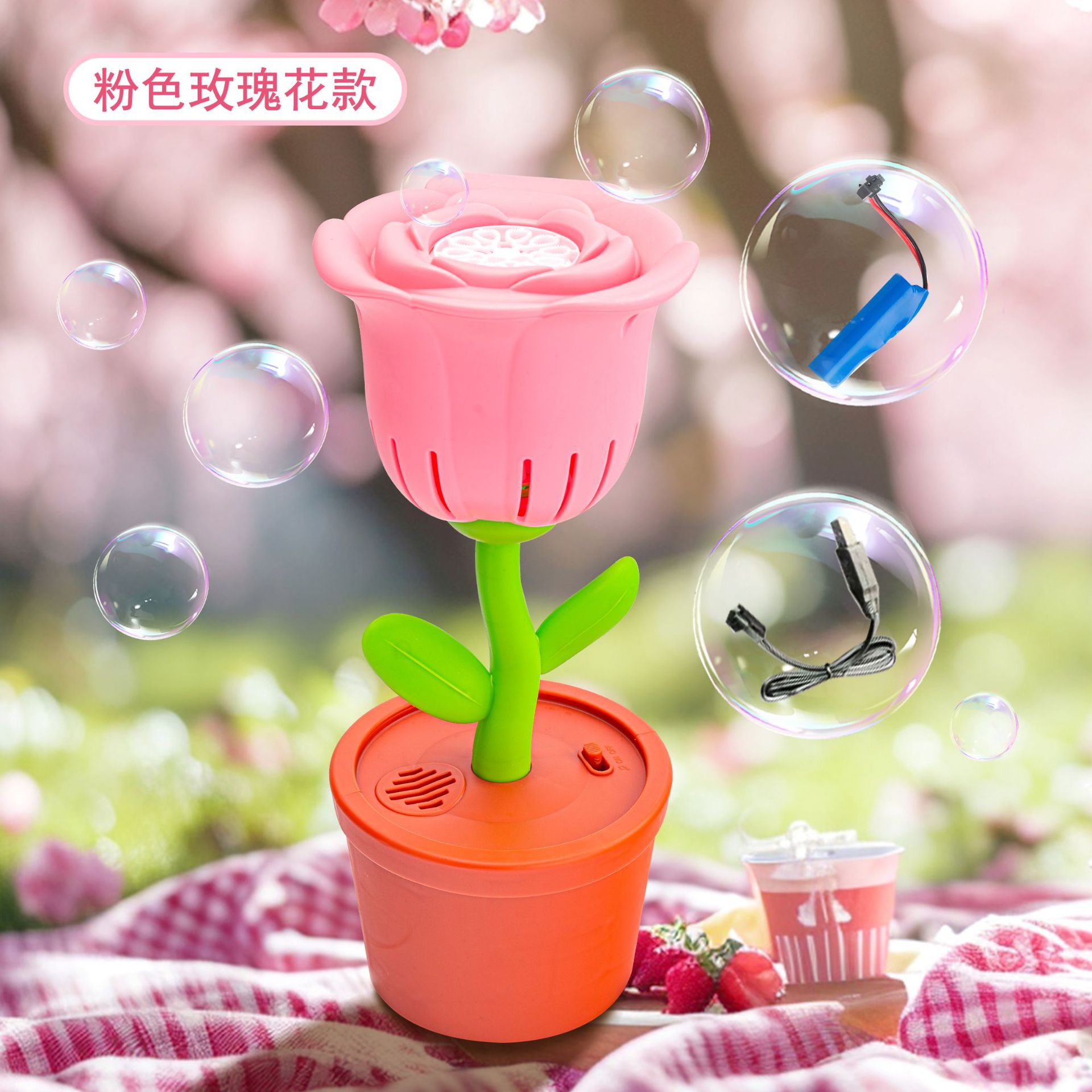 pink rose charging bubble machine