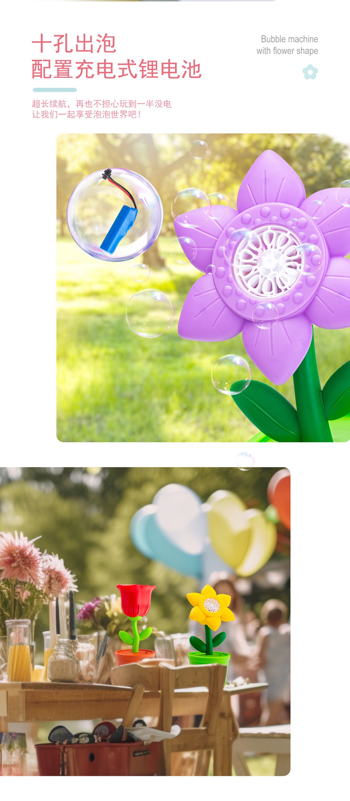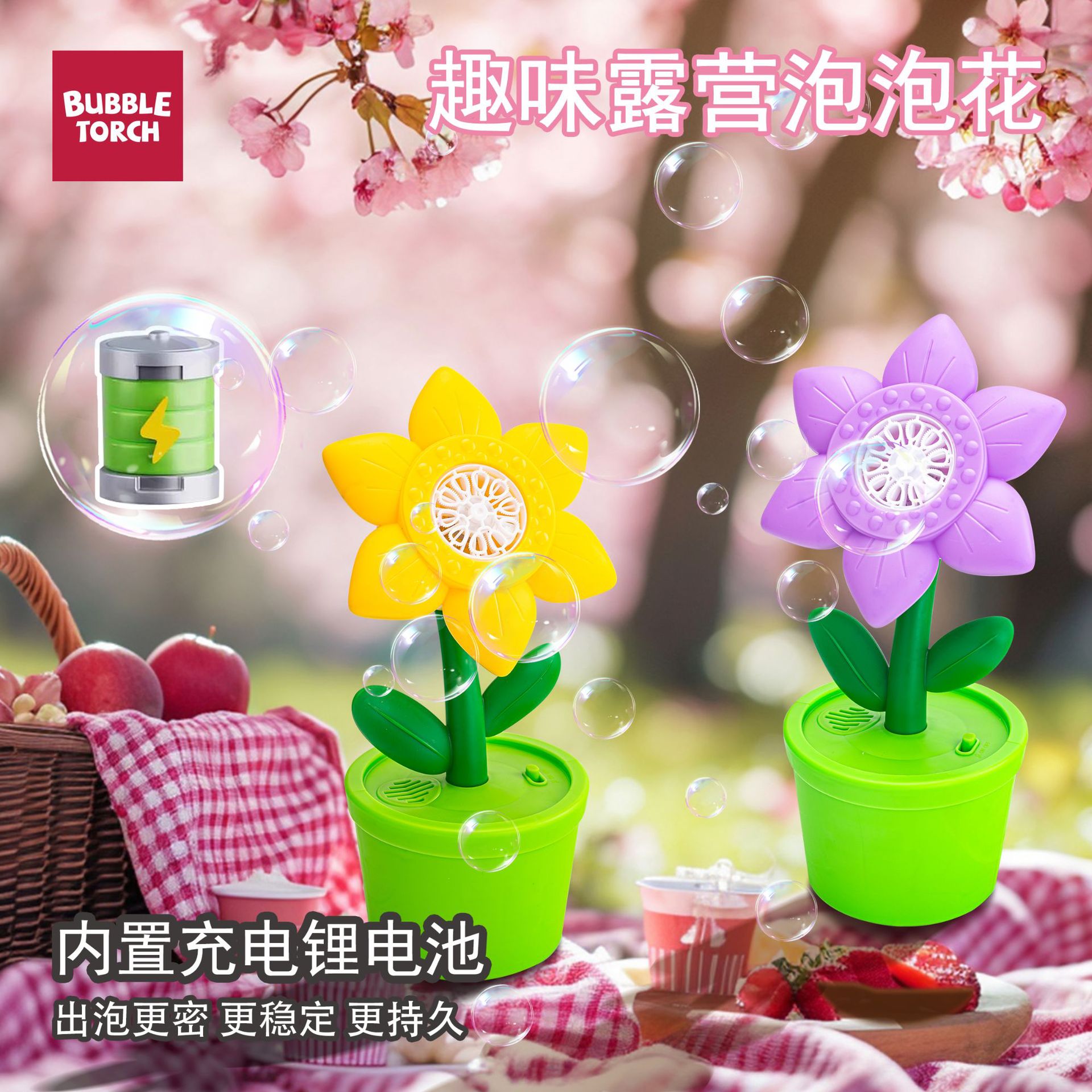 purple sunflower charging bubble machine