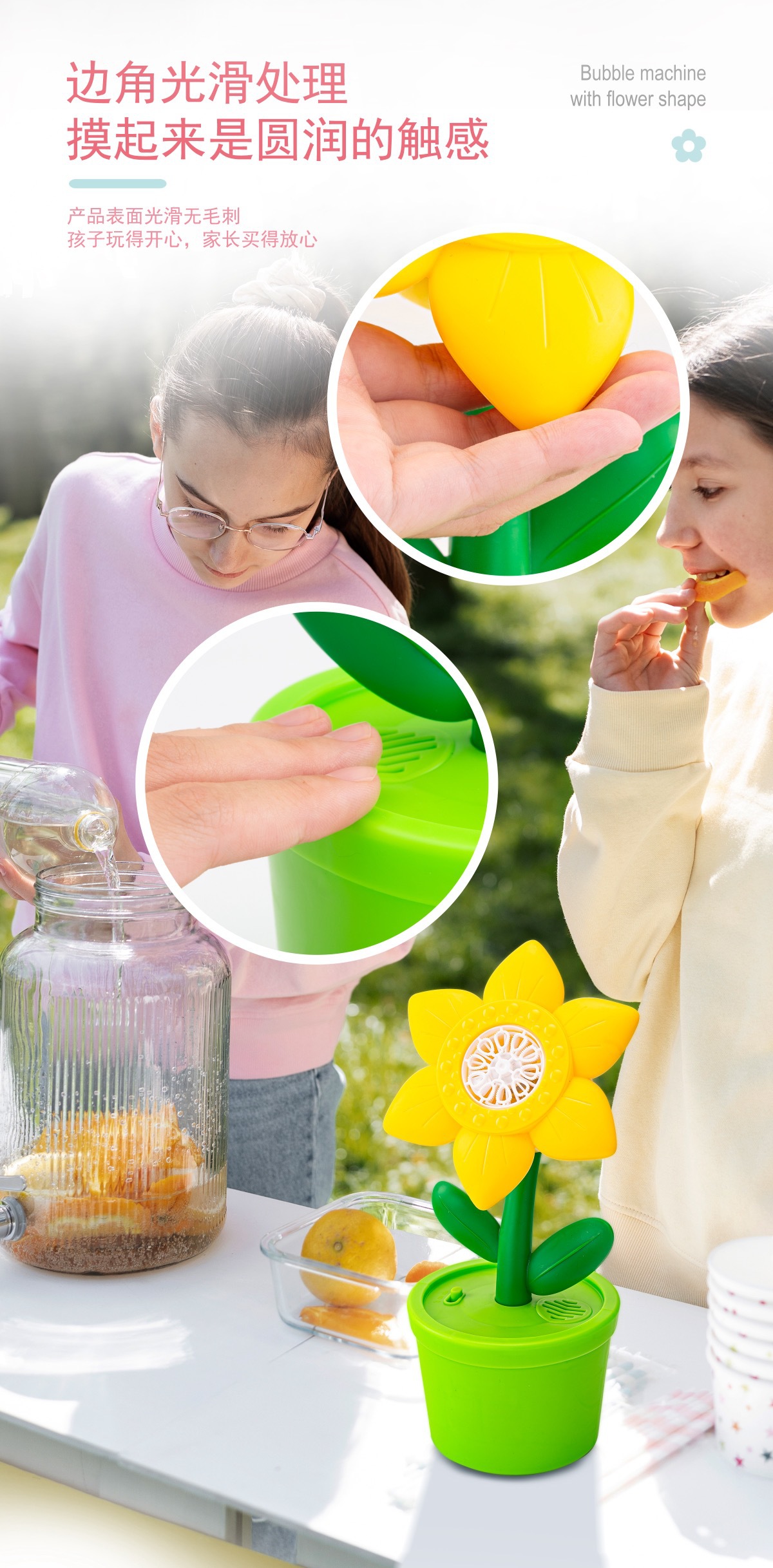 yellow sunflower charging bubble machine