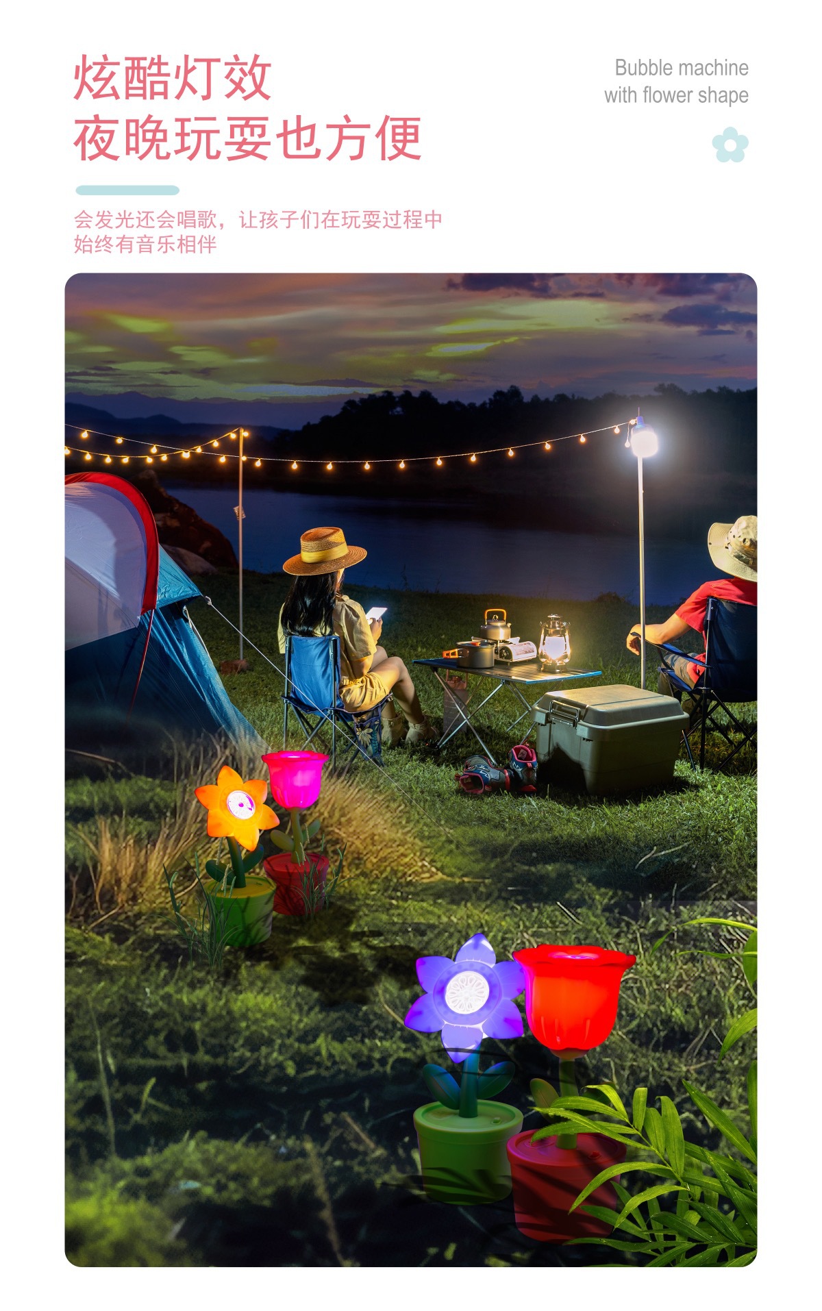 blue street lamp charging bubble machine