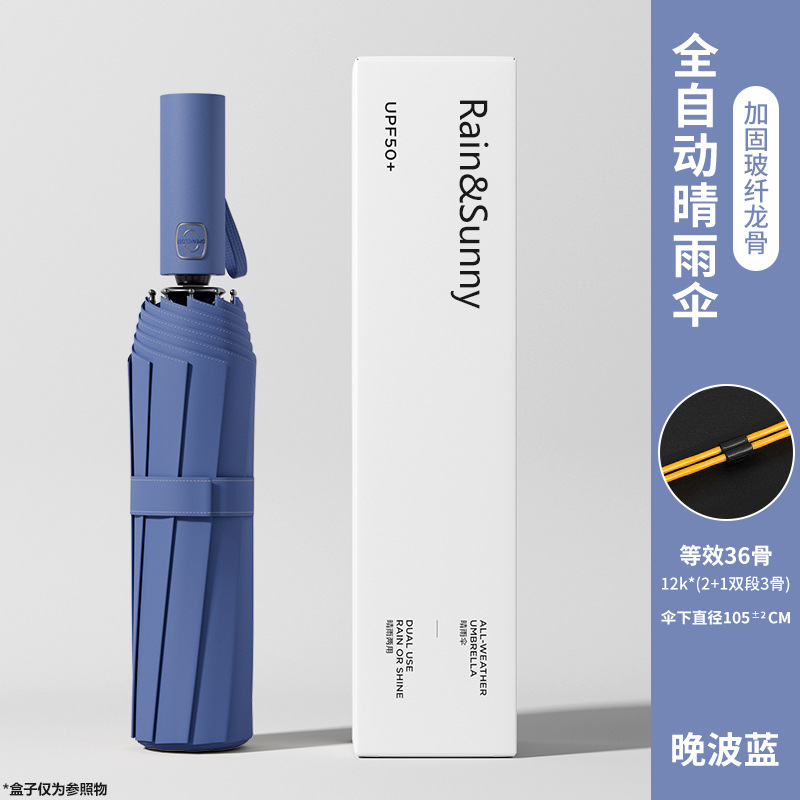 automatic 12 steel rib without box [36 glass fiber bone double]-quiet blue