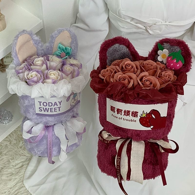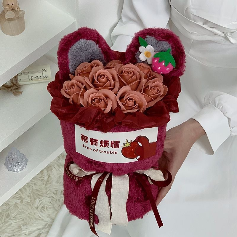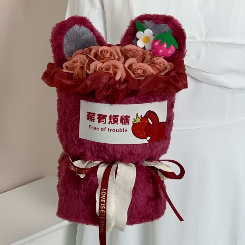 9 flowers strawberry bear-soap flower