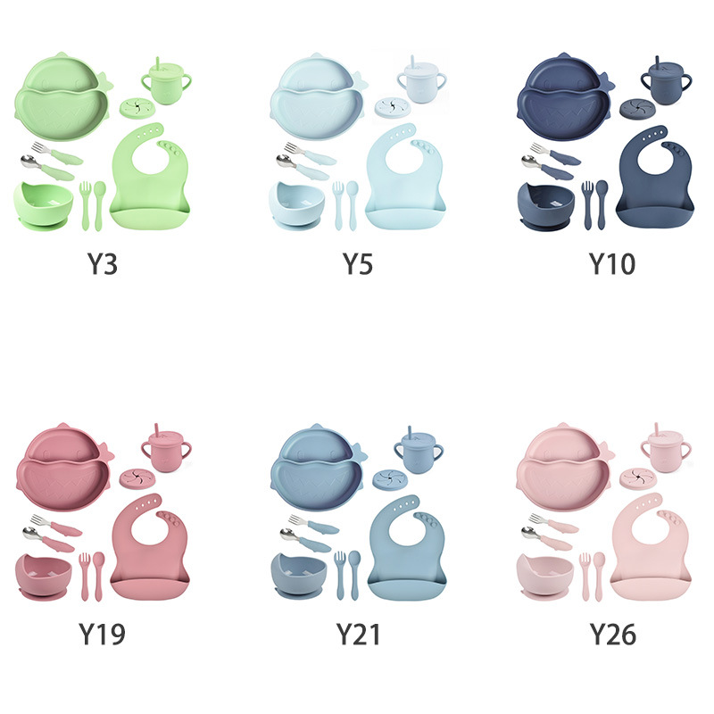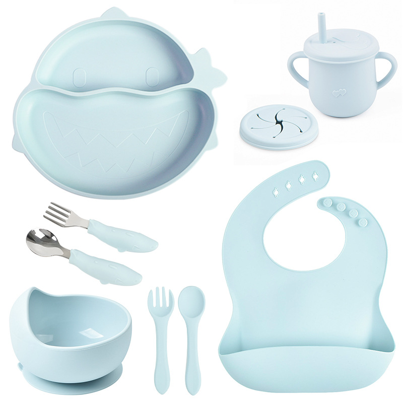 | a shark dinner plate + silicone bowl + bib + cup with straw + snack cover + silicone spoon fork + shark stainless steel spoon fork | ¥45.88 | 90000 set available |