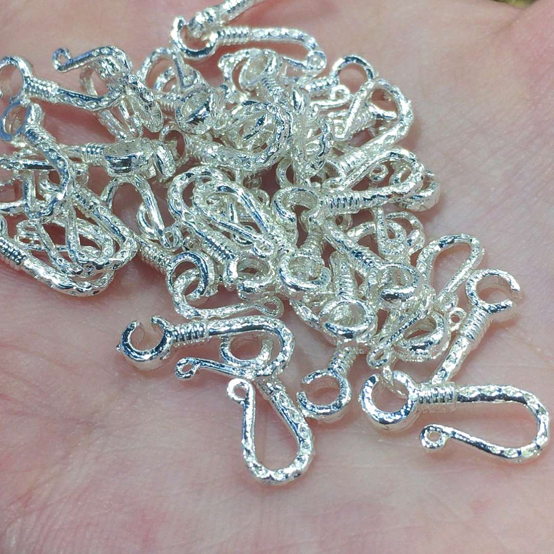 5 silver-plated clasps with natural textures, perfect for finishing off bracelets and necklaces. Simply clip them on, and the sense of handmade delicacy is instantly achieved.