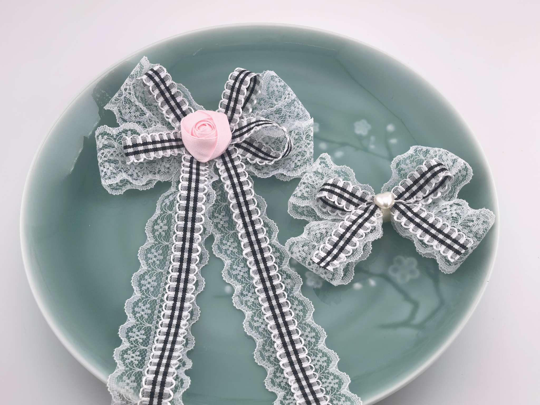 new lace plaid ribbon bow hand knotted handmade bow clothing accessories ornament accessories 中文版