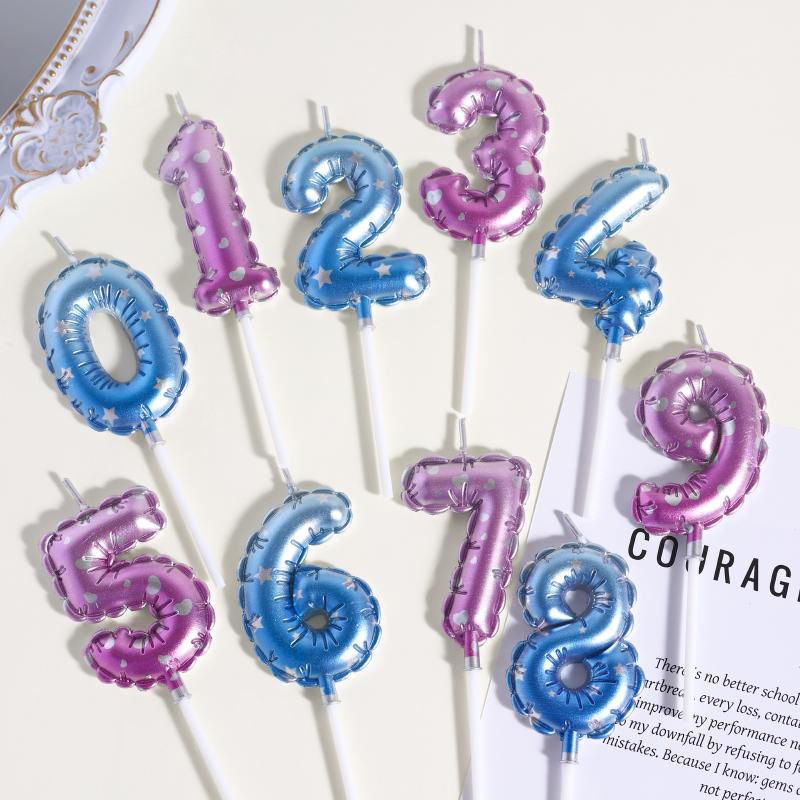 ins south korea birthday candle cake decorative ornaments balloon digital candle plug-in blue pink age candle
