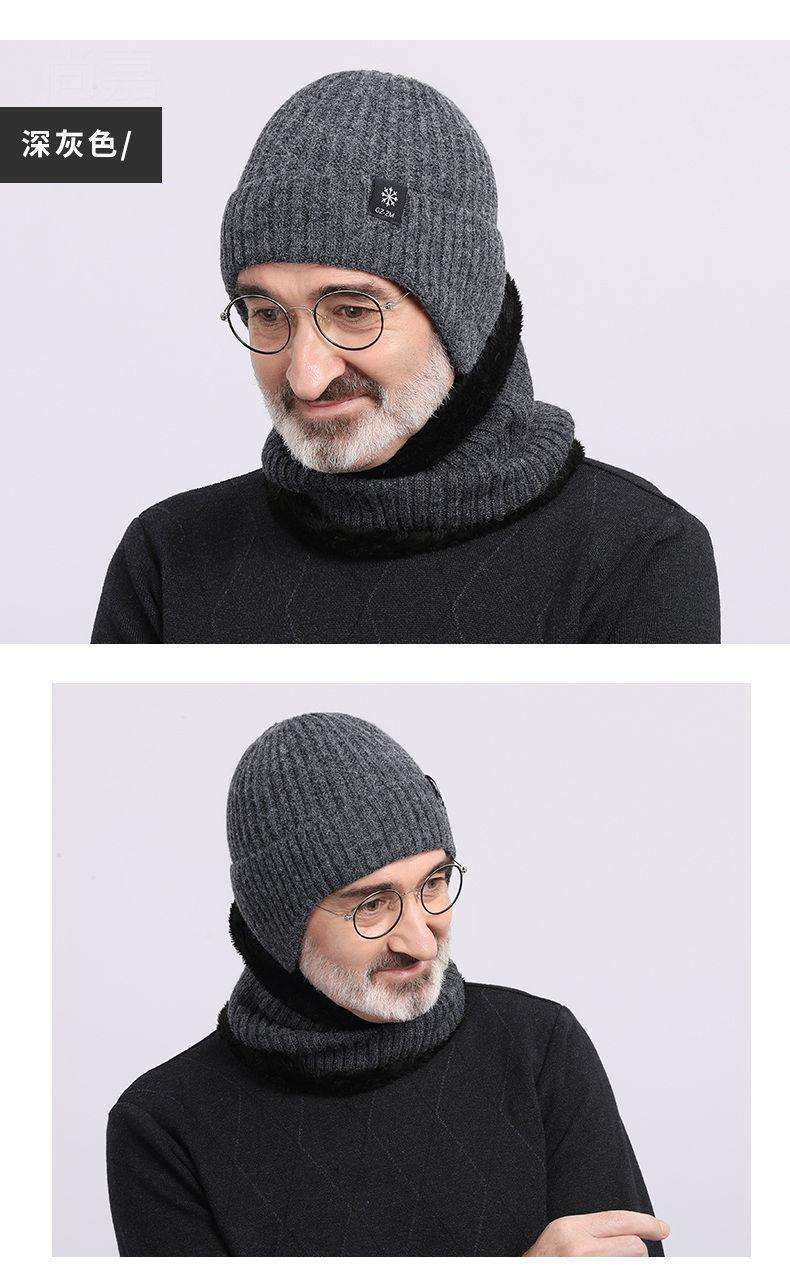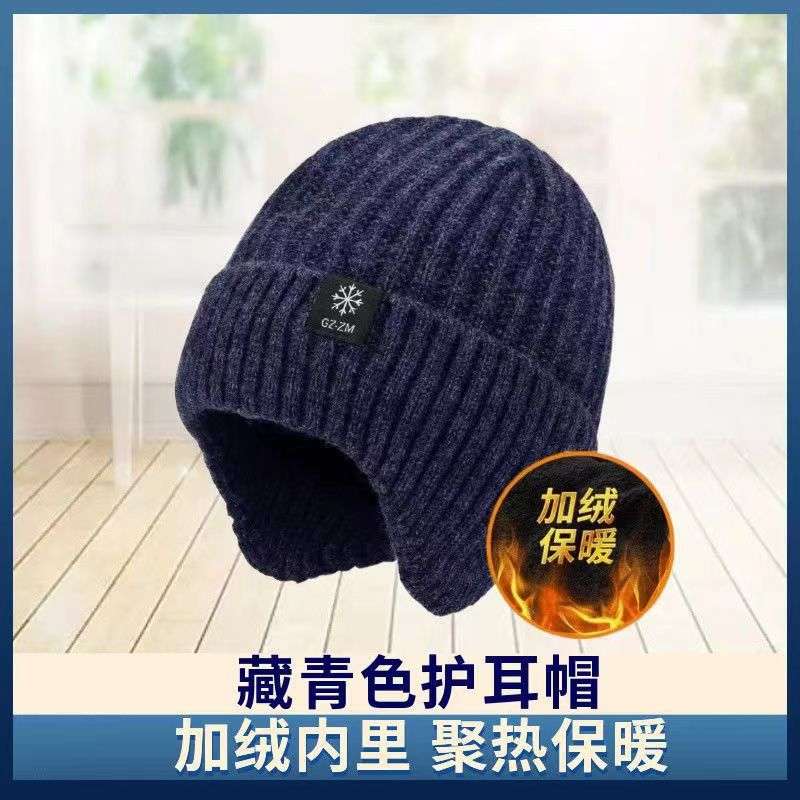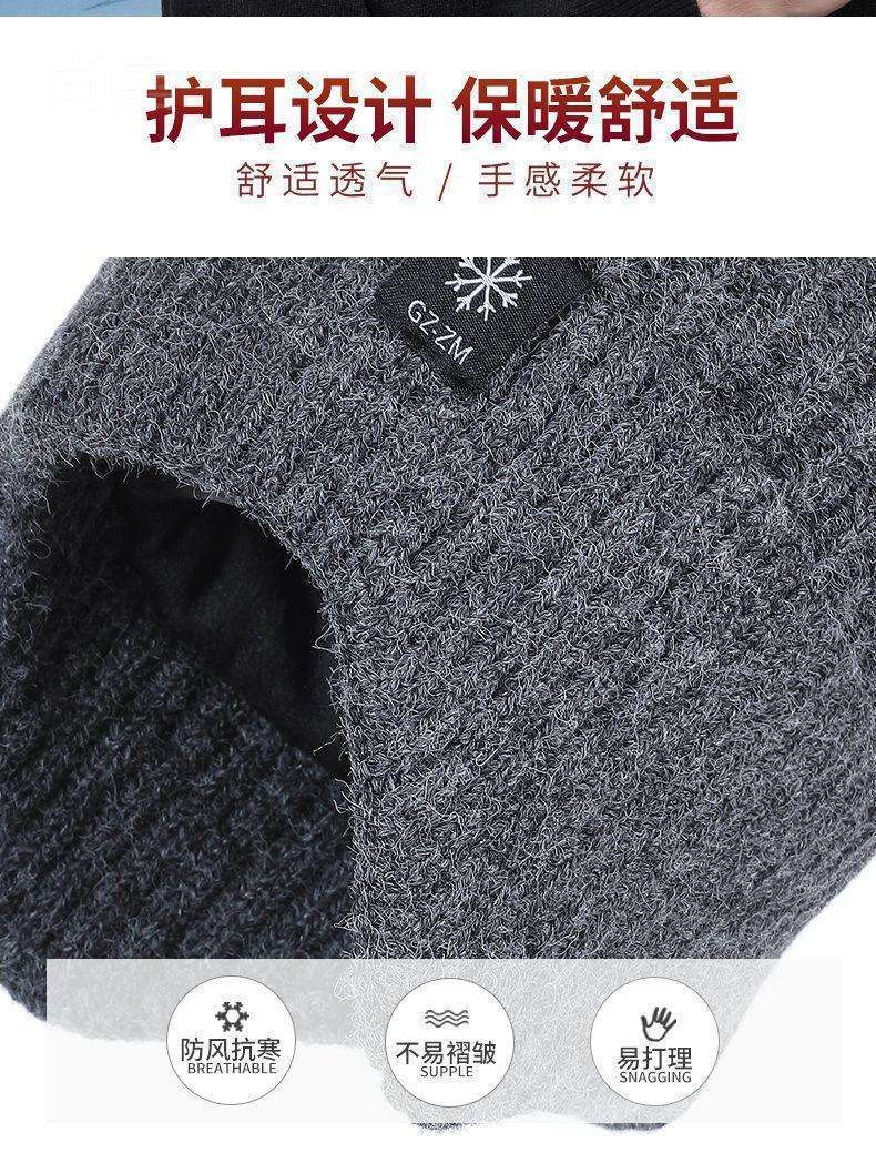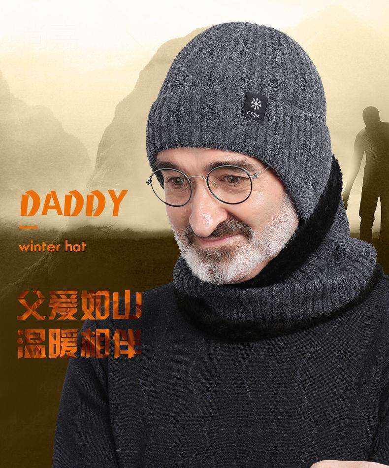 Middle-aged and elderly men's hats, winter warm ear protection for the elderly father and grandfather, thick knitted wool hats for men in winter.