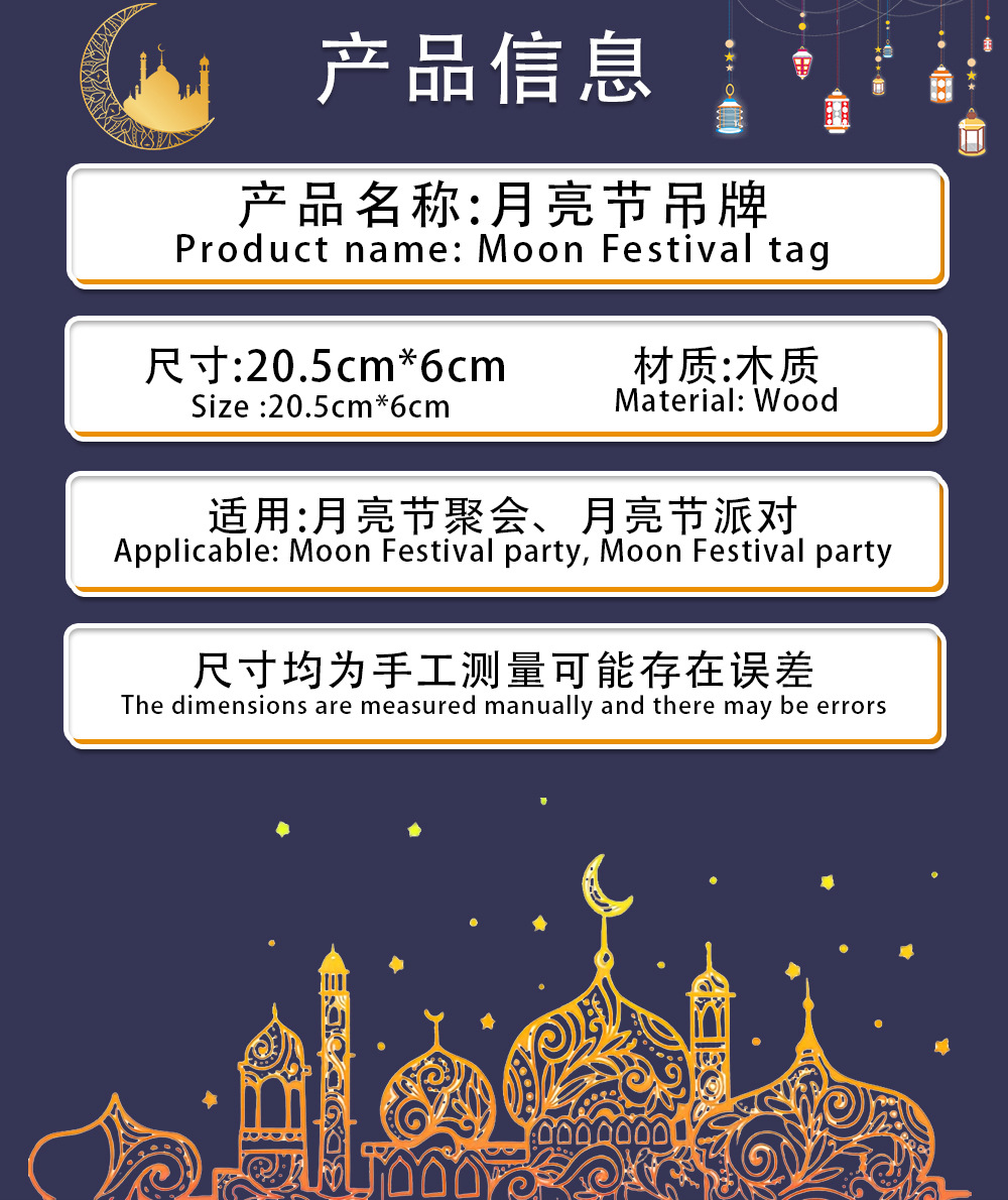 middle east moon festival wooden pendant (8 pieces per pack)