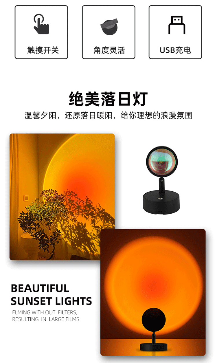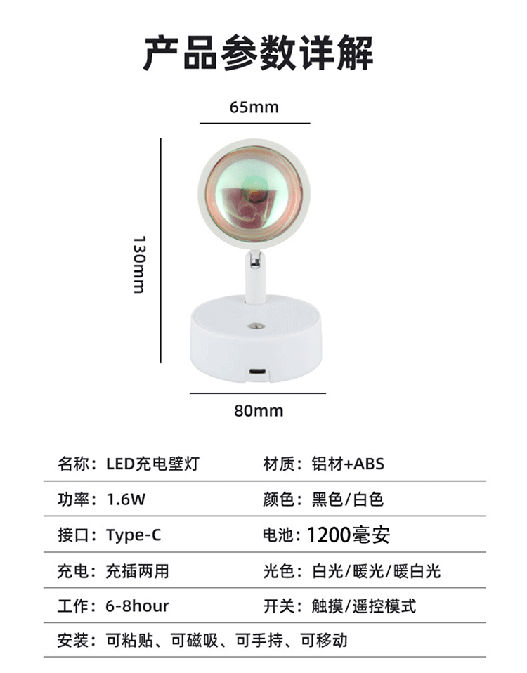sunset red remote control model small night lamp punch-free non-remote control wall lamp indoor atmosphere table lamp outside the mirror small night lamp 中文版