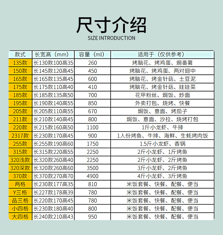 | small four grids (800 ml) | ¥0.69 | 972565 piece available |
