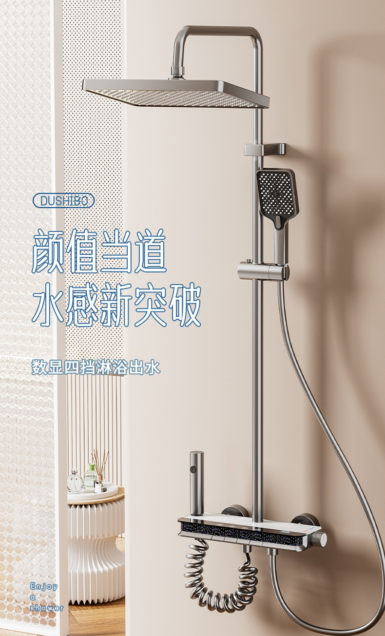shower set, shower set, shower pressure boost, full copper shower set, smart and constant temperature shower head, gun gray shower set, shower set with gold color, hidden installation shower set, shower set with gun gray color, Amazon's hot-selling shower set, hardware accessories production factory