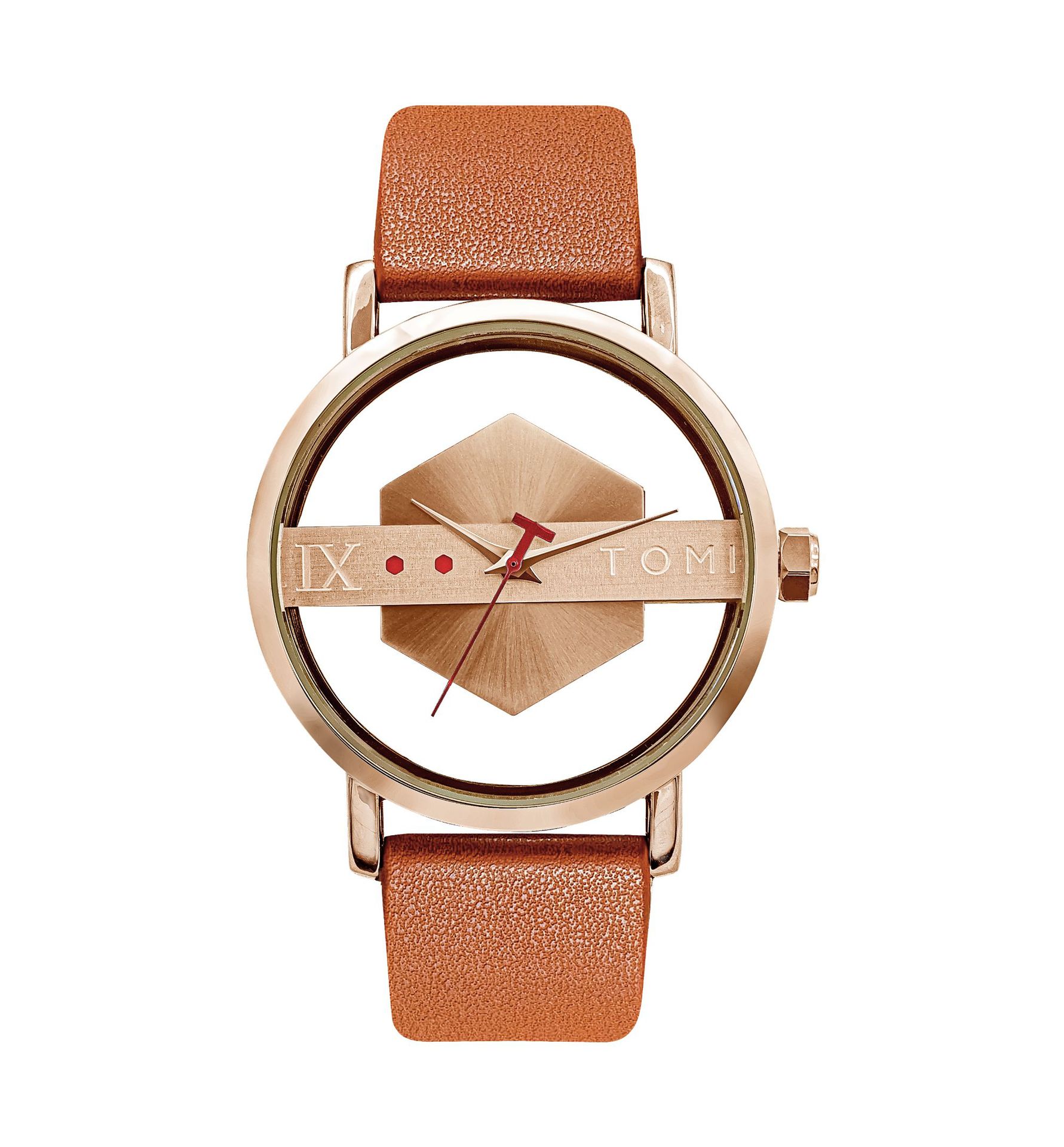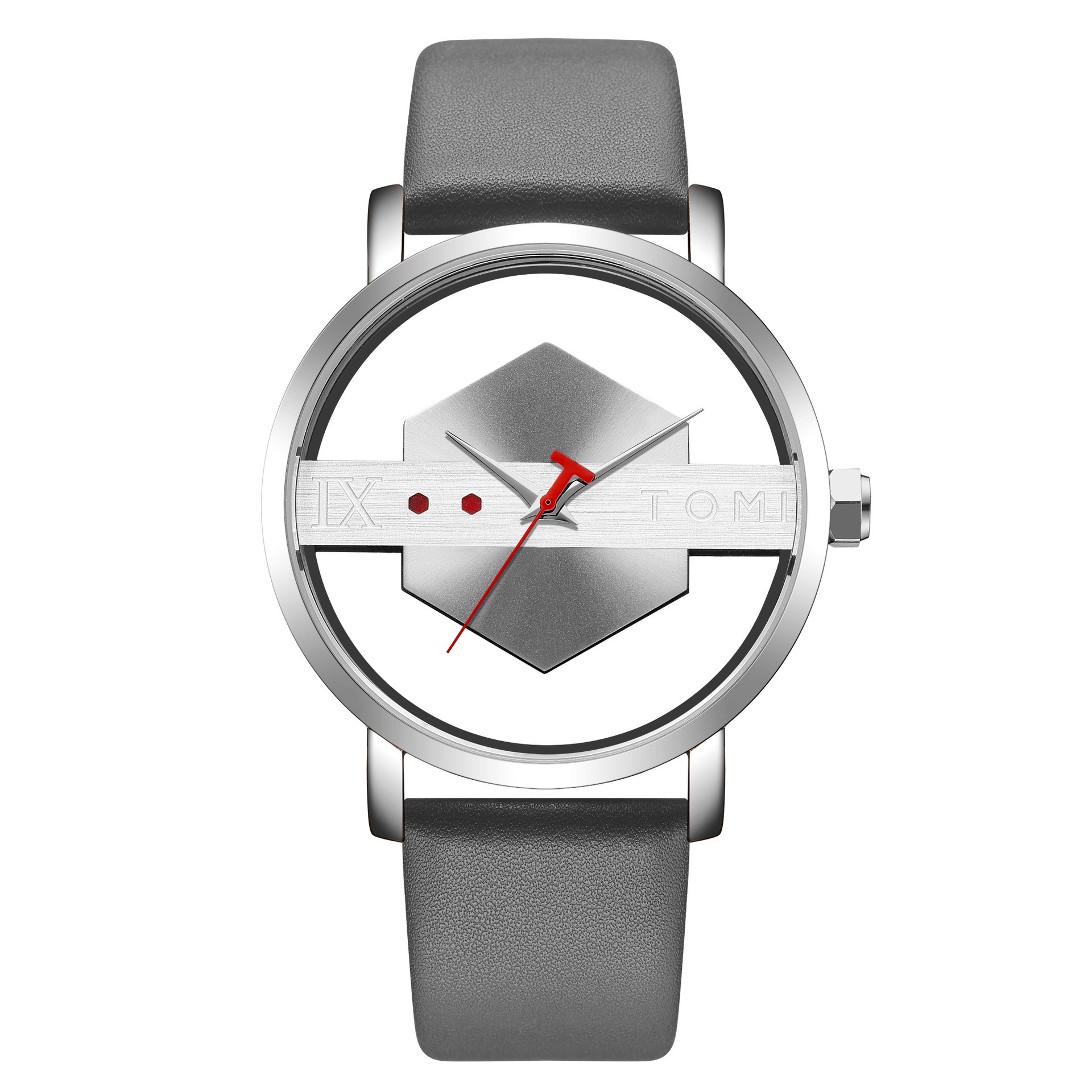 TOMI's unique design with a half-transparent concept, suitable for both men and women, is a neutral and casual fashion quartz watch.