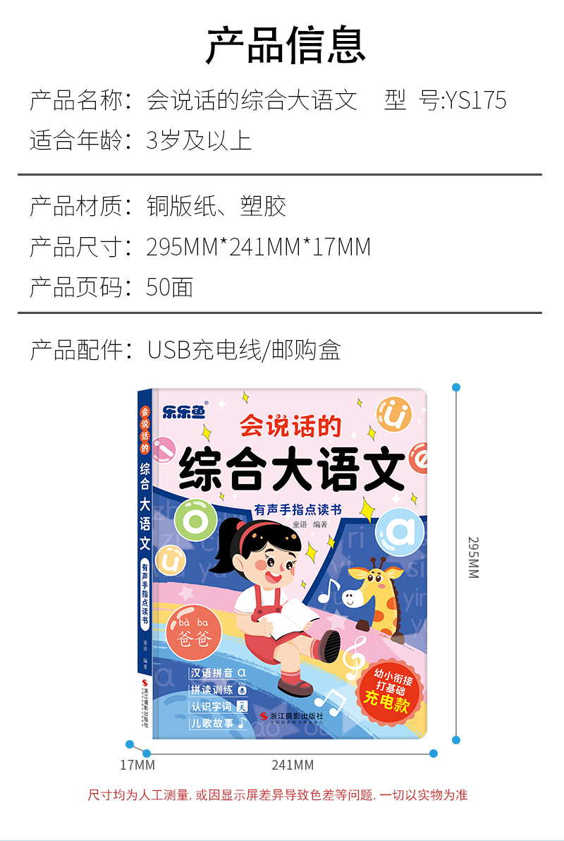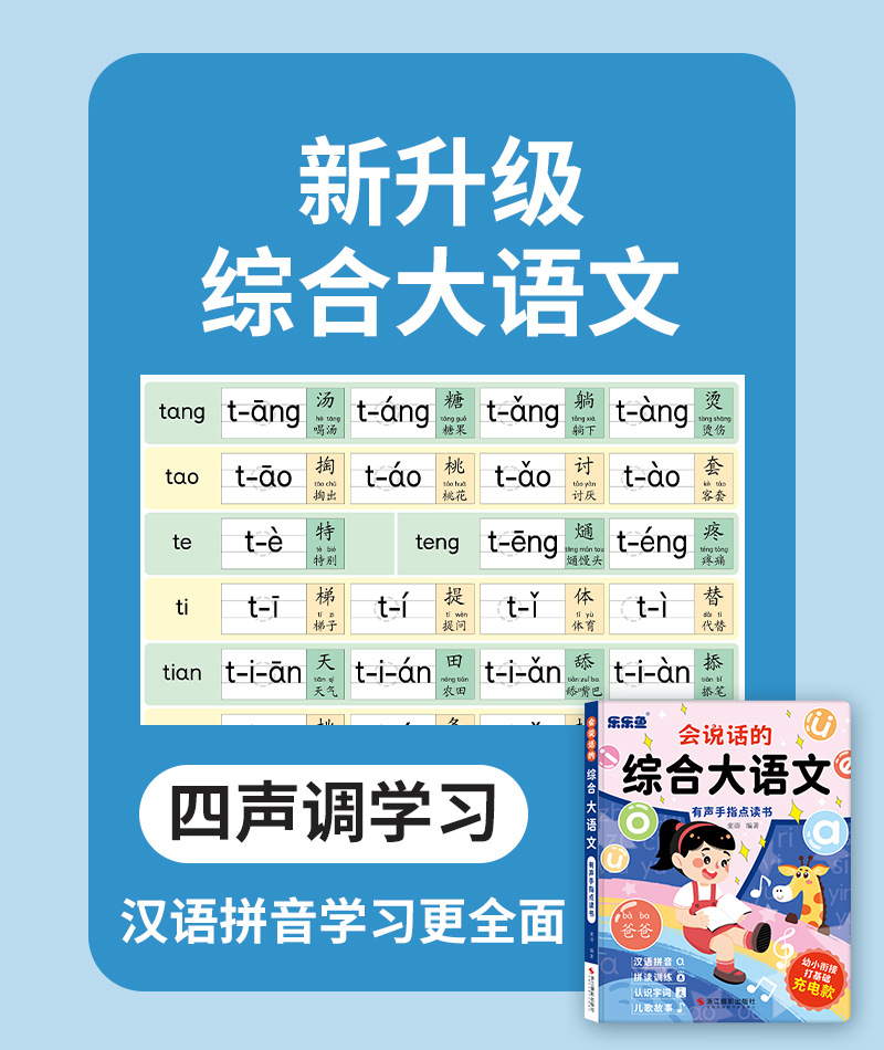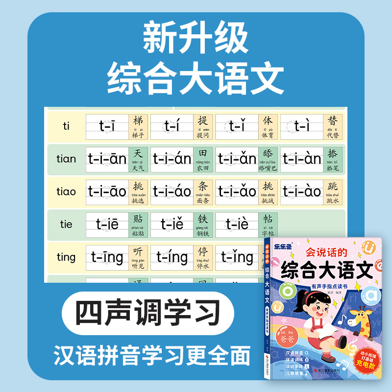 talking comprehensive chinese chinese pinyin spelling training understanding words children's songs story point reading audio book 中文版