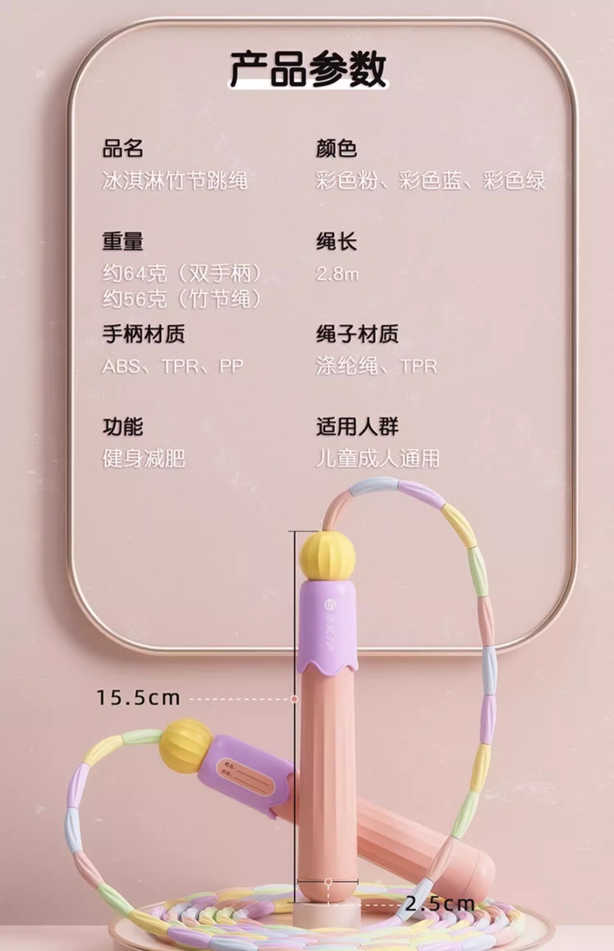 cherry blossom powder [name can be written, no pain, non-slip, no knot, 2.8m rope length for primary school students] gift buggy bag