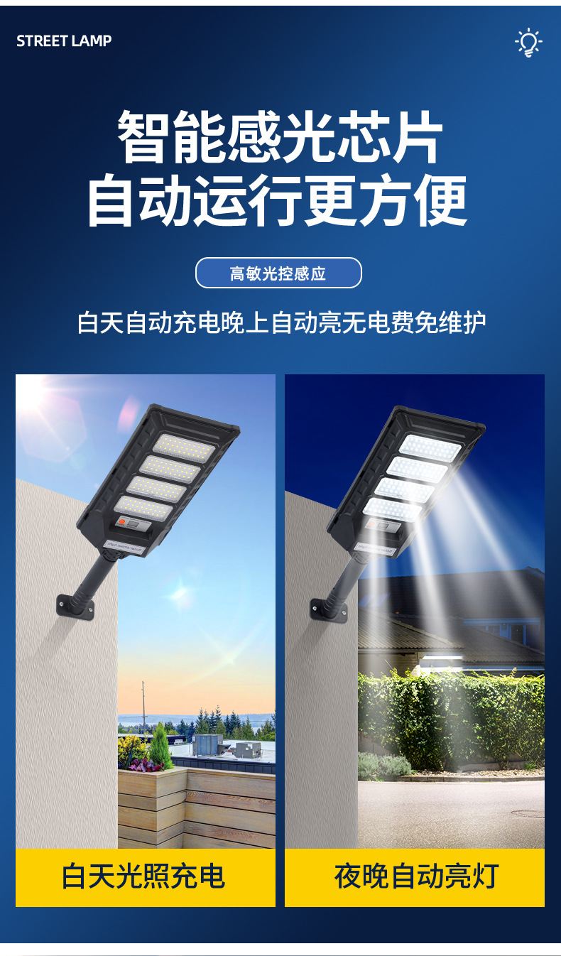 New design human body sensing solar integrated street lamp Outdoor home use automatically lights up at dusk Solar wall lamp
