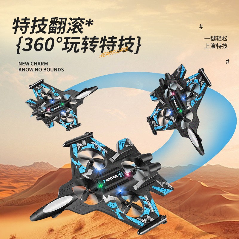 Remote control aircraft gesture sensing four-axis UAV (unmanned aerial vehicle) light drop-resistant fighter model