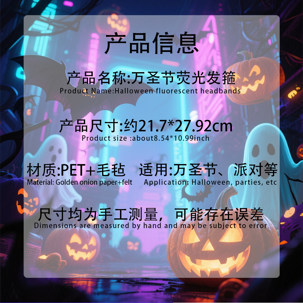 | halloween fluorescent headband | ¥3.84 | 17368 piece available |