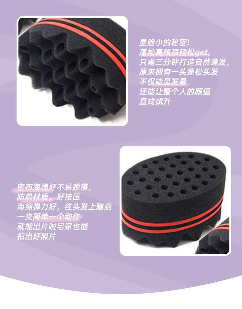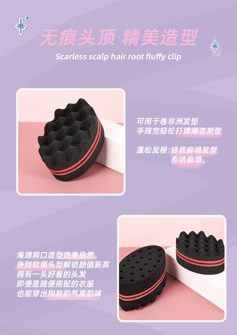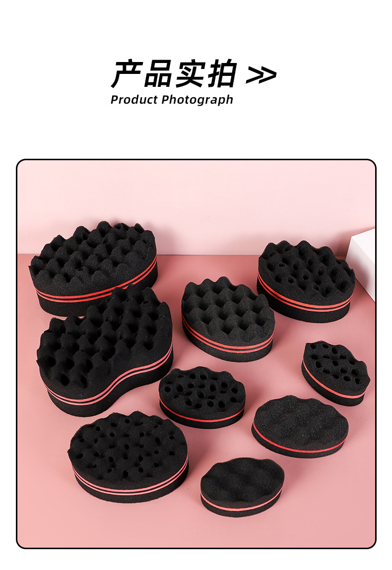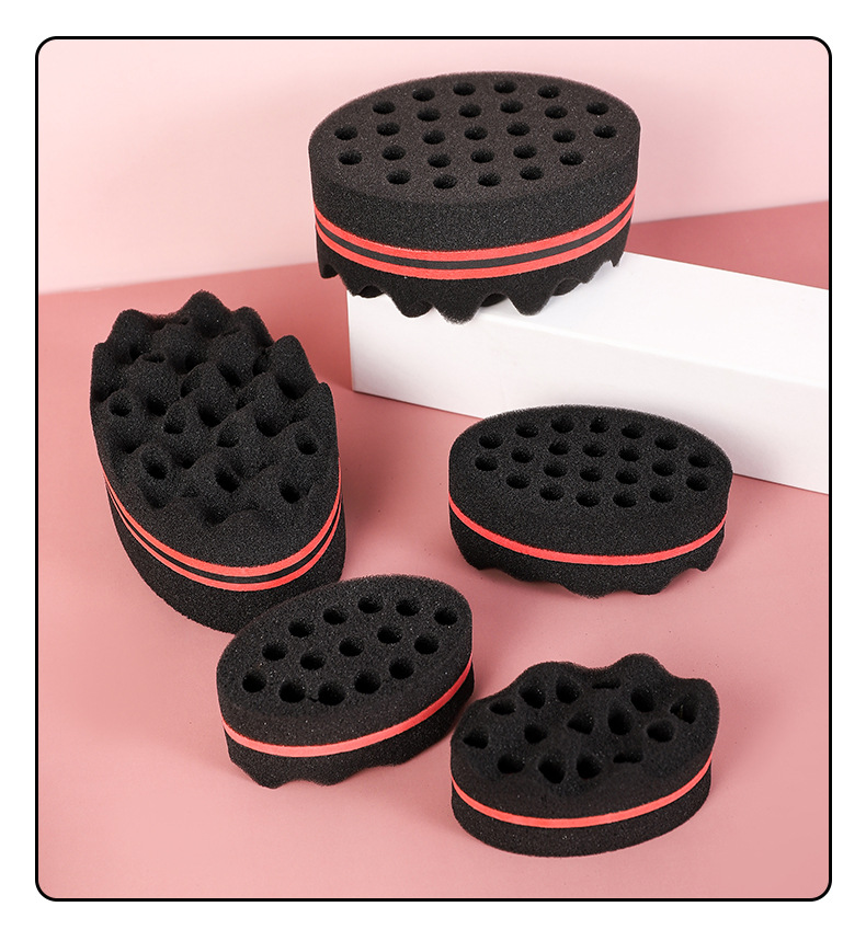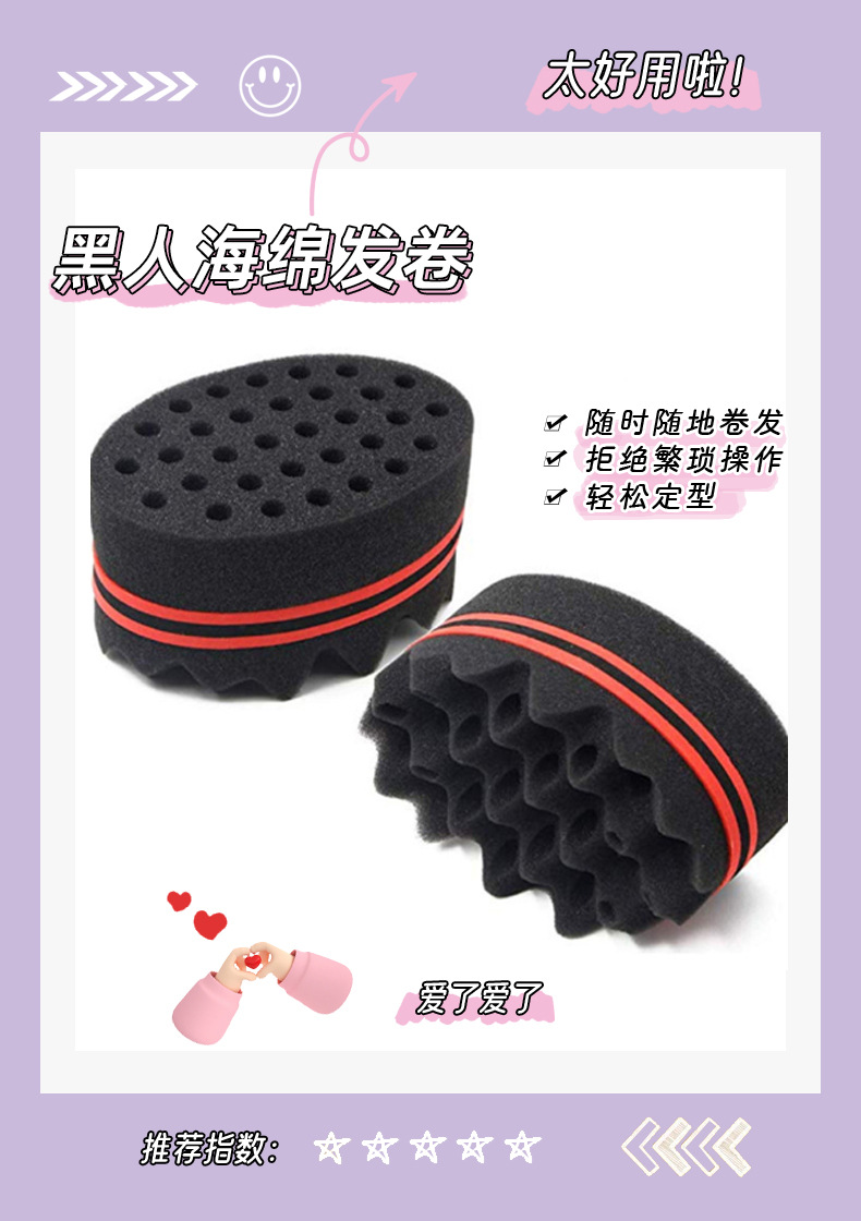 black sponge big hole hair curler dirty hair random hair curly sponge magical curly hair sponge 中文版