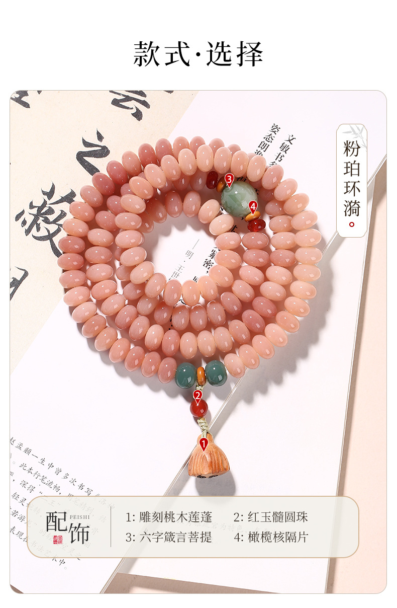 pink amber ring ripple 108 pieces 9 * 6mm