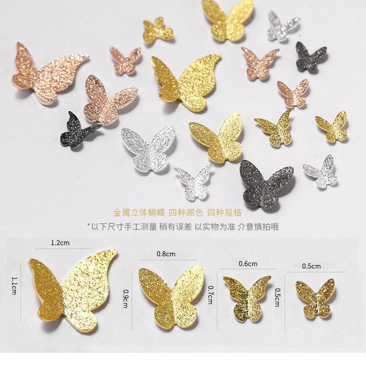 Internet celebrity's favorite DIY nail art with metal butterfly bows, similar to Little Red Book, matte gold small butterflies