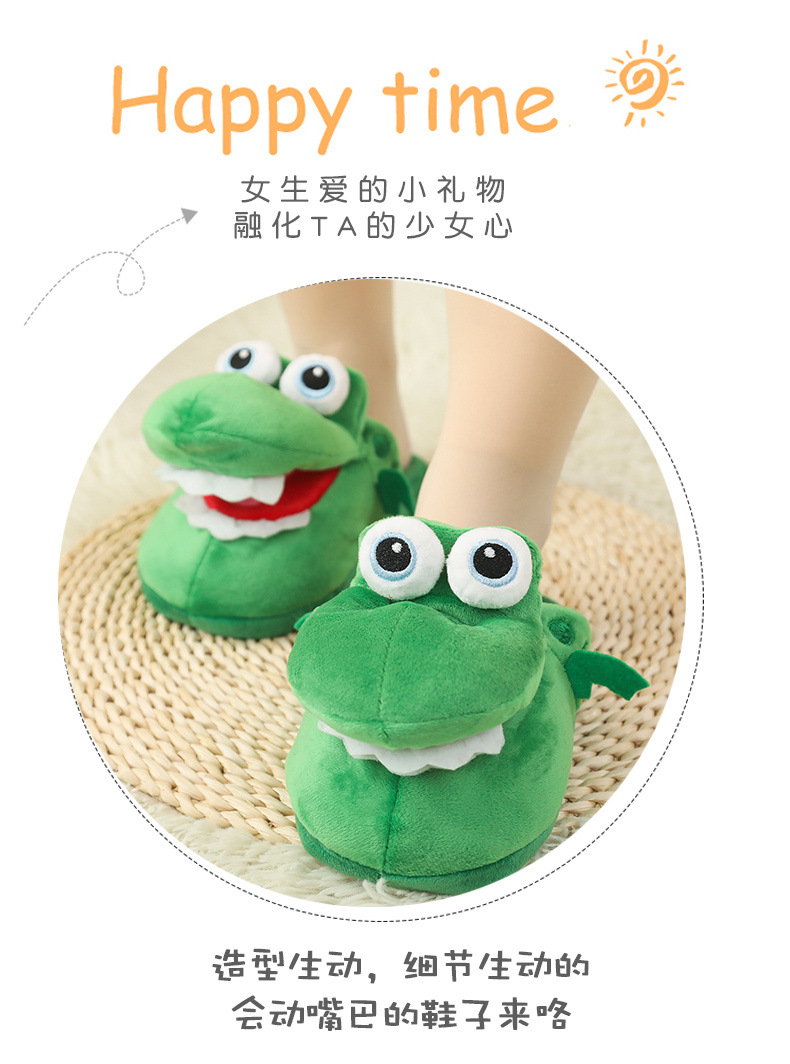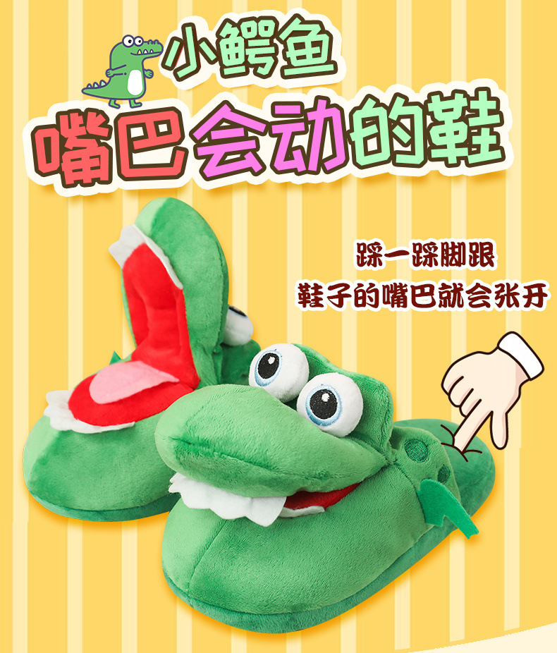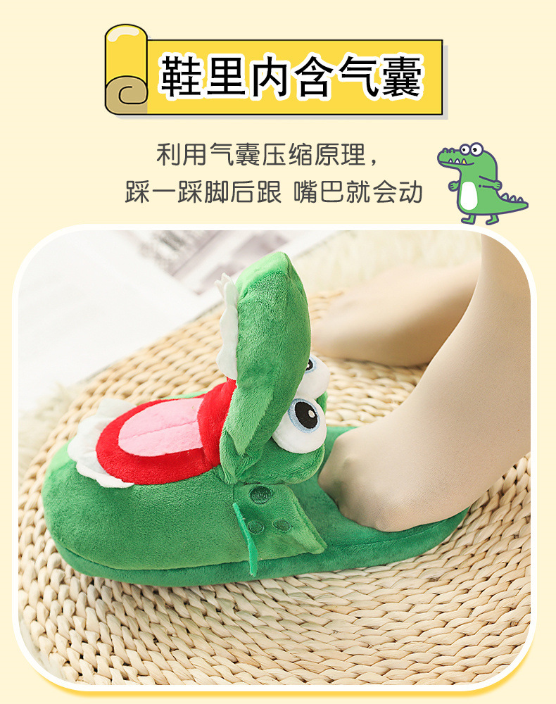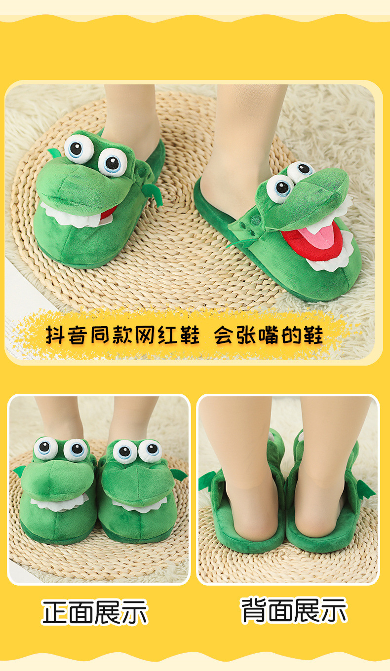 crocodile slippers with open mouth stuffed animal toy slippers dancing spoof dinosaur cotton shoes sand carving 中文版