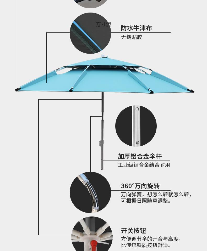2.2 m vientiane reinforcement (aluminum alloy never rusted down rod +0 transparent sun protection and rainproof) blue