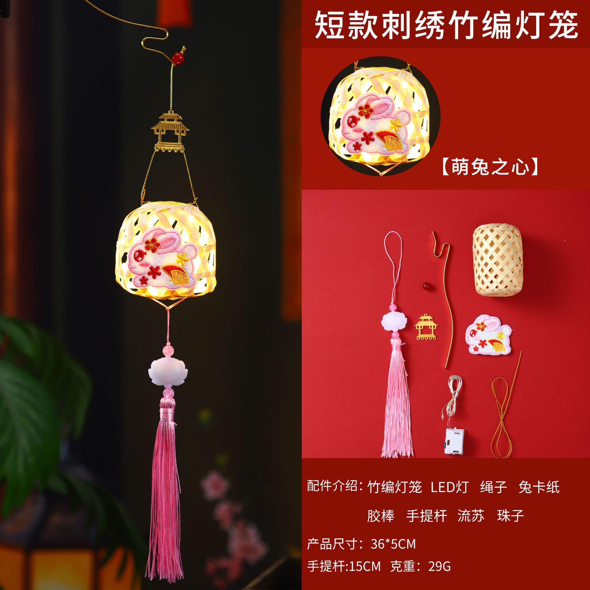 short embroidery bamboo lantern-[heart of adorable rabbit]]