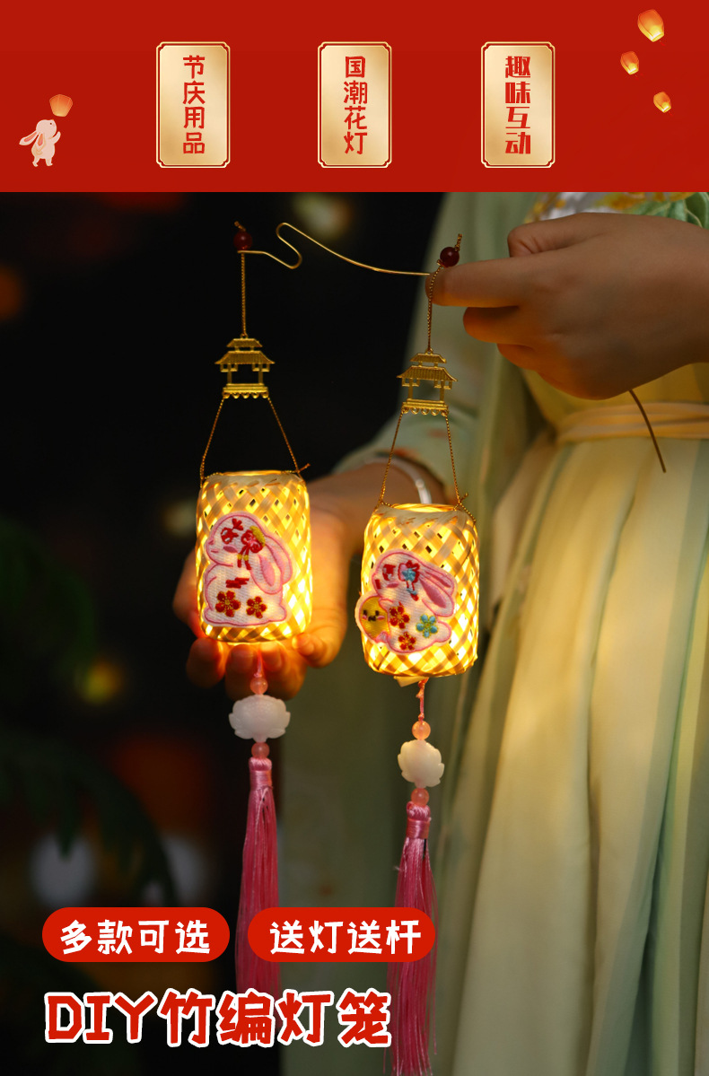 short embroidery bamboo lantern-[moonlight rabbit]]