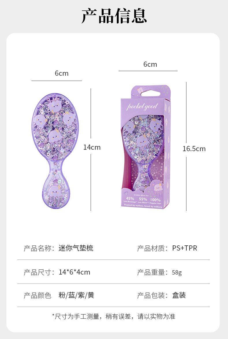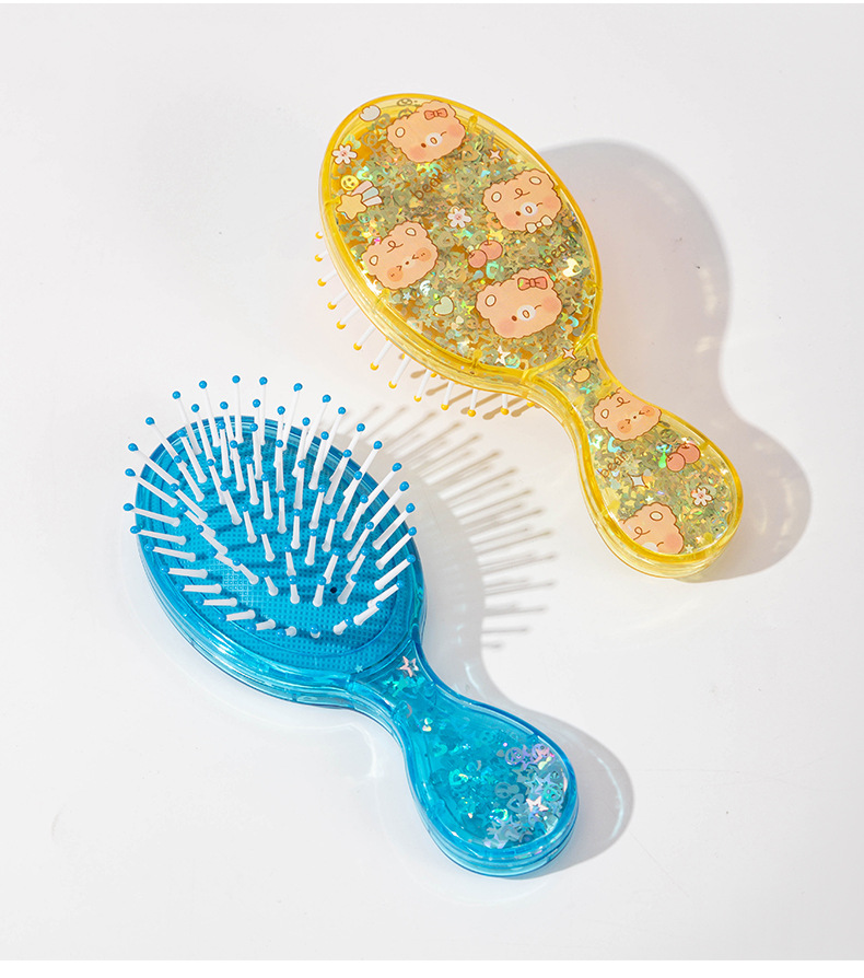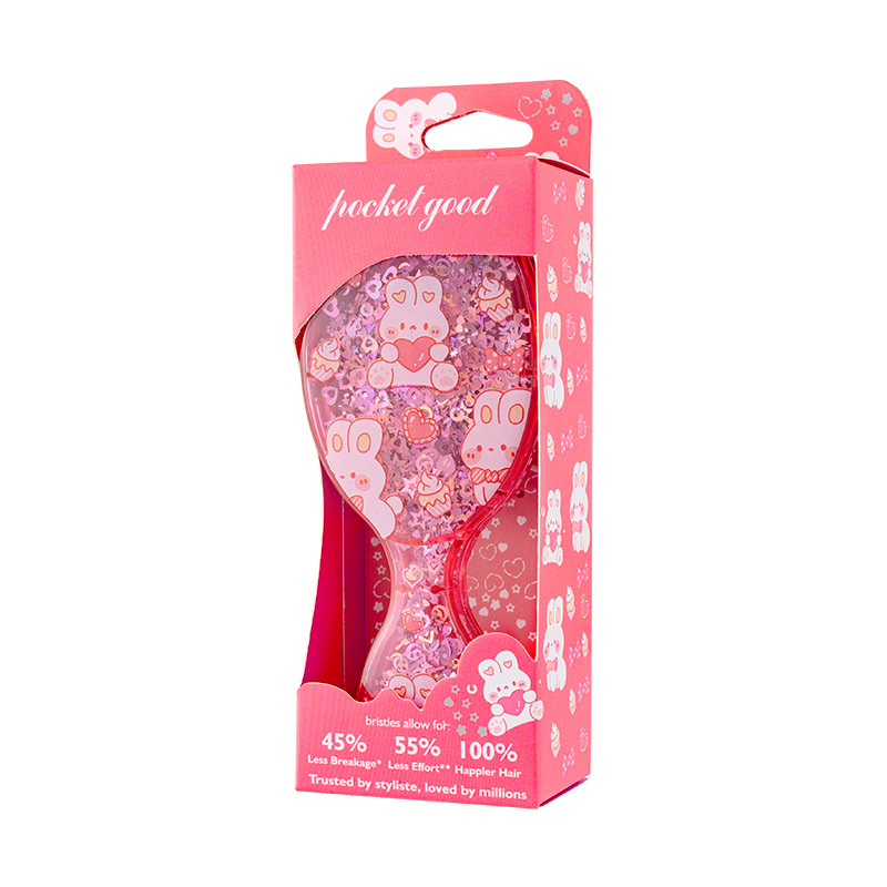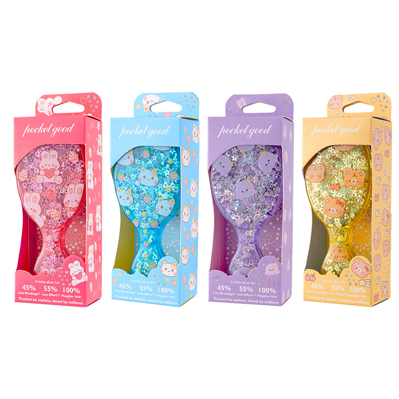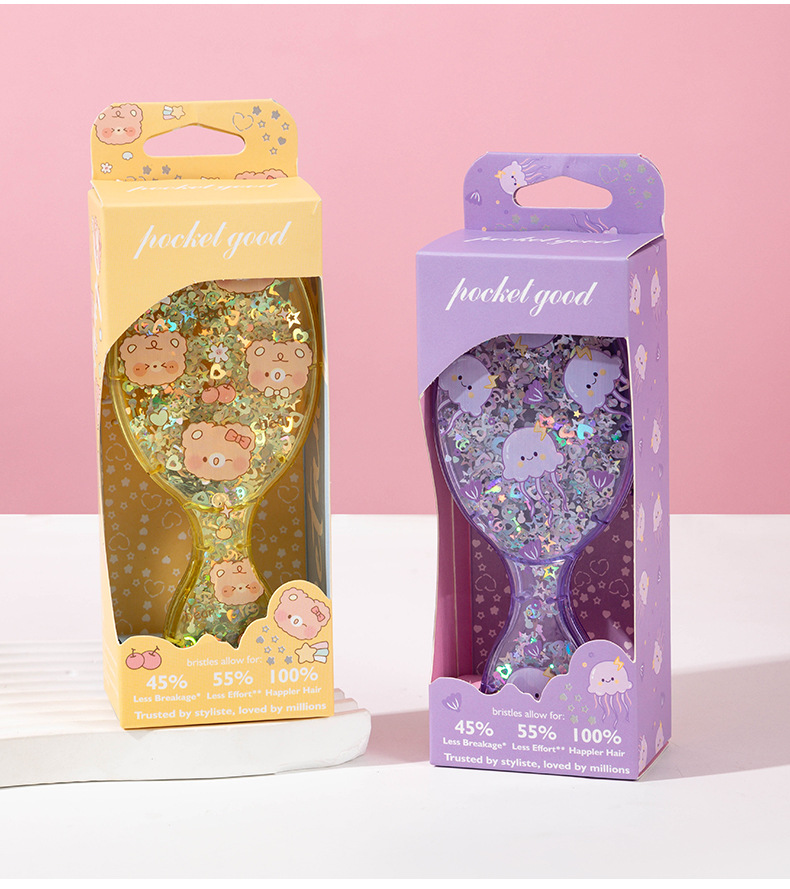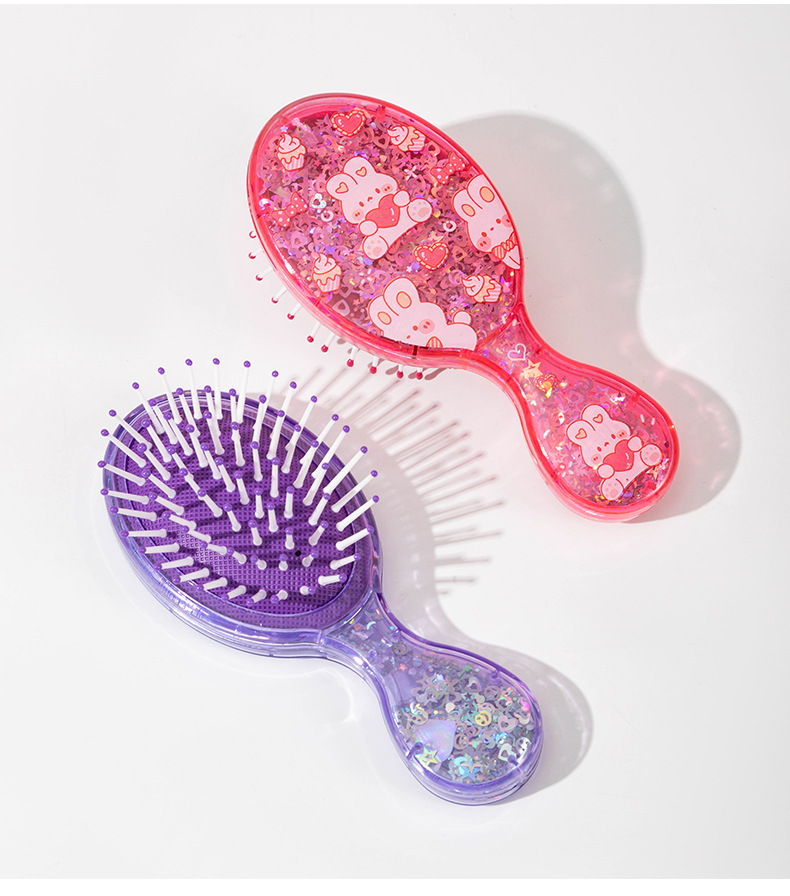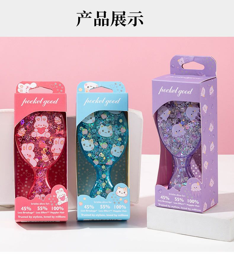 cute printed air cushion comb fluffy skull top travel comb portable small portable children's sequined boxed small comb 中文版
