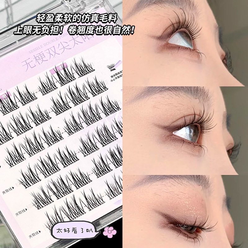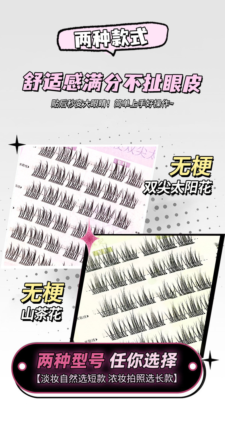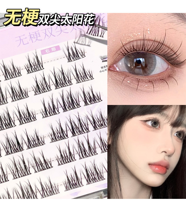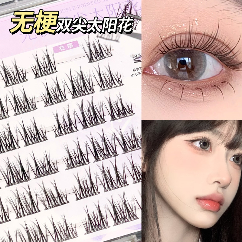 glue-free stemless false eyelashes novice natural soft double pointed sunflower single cluster comic eyelash 中文版