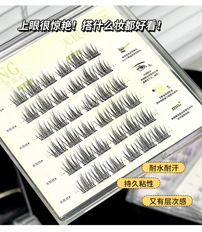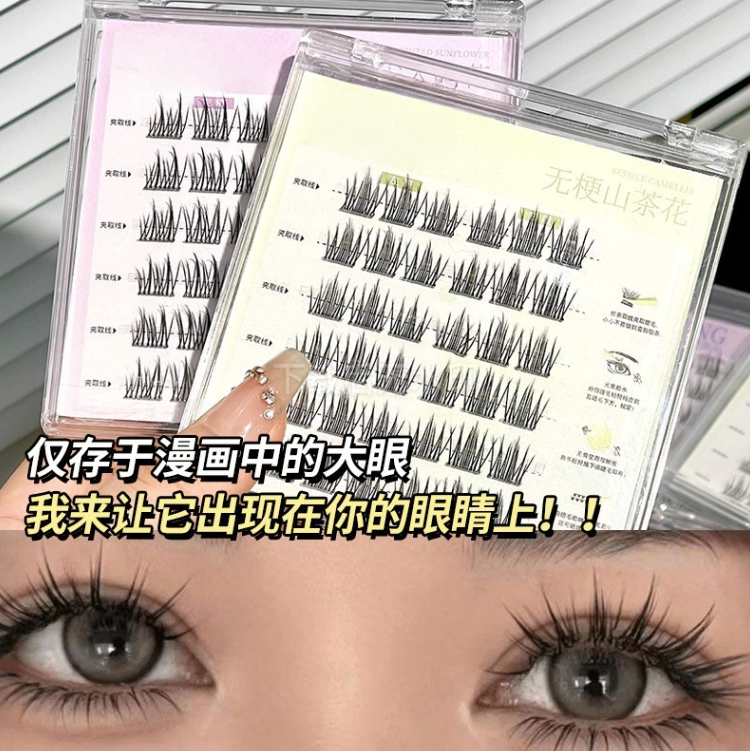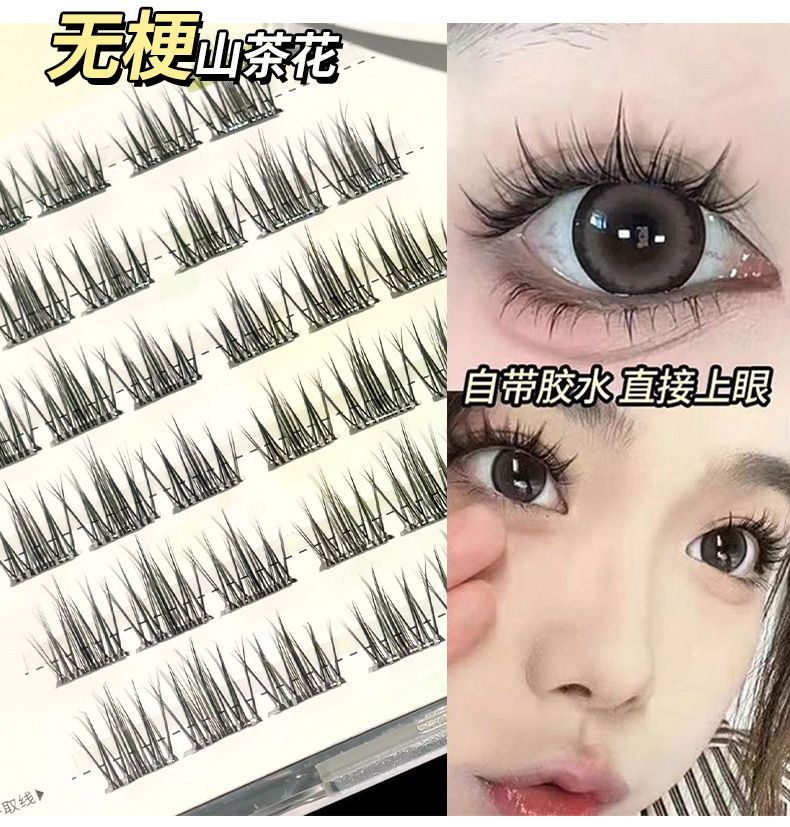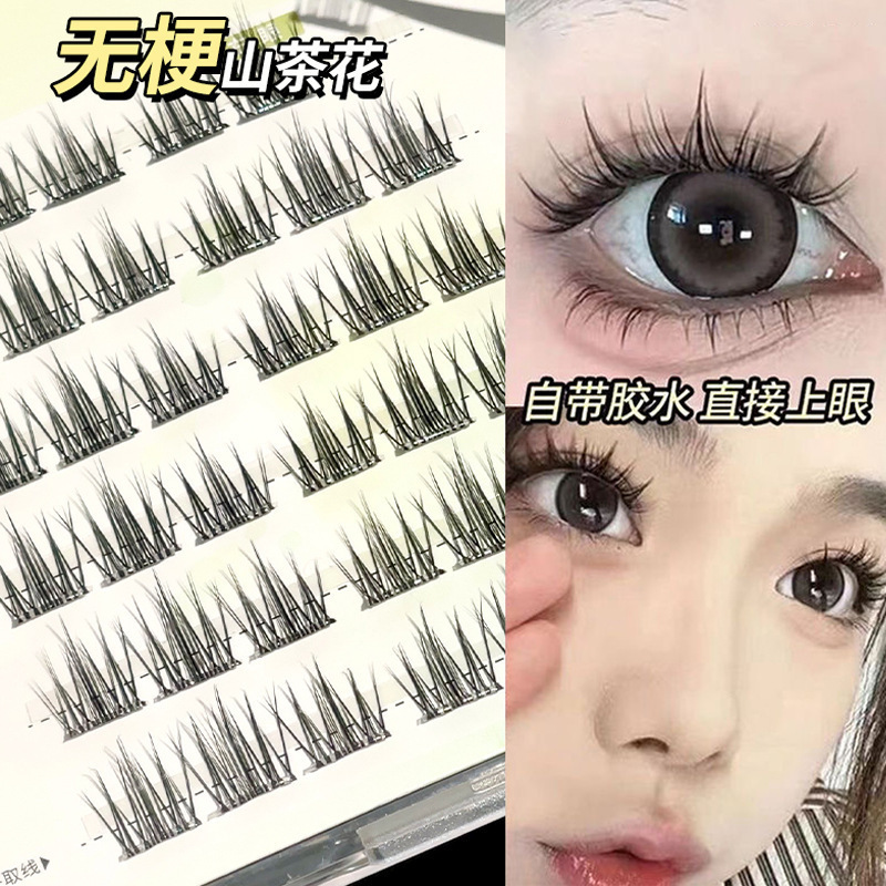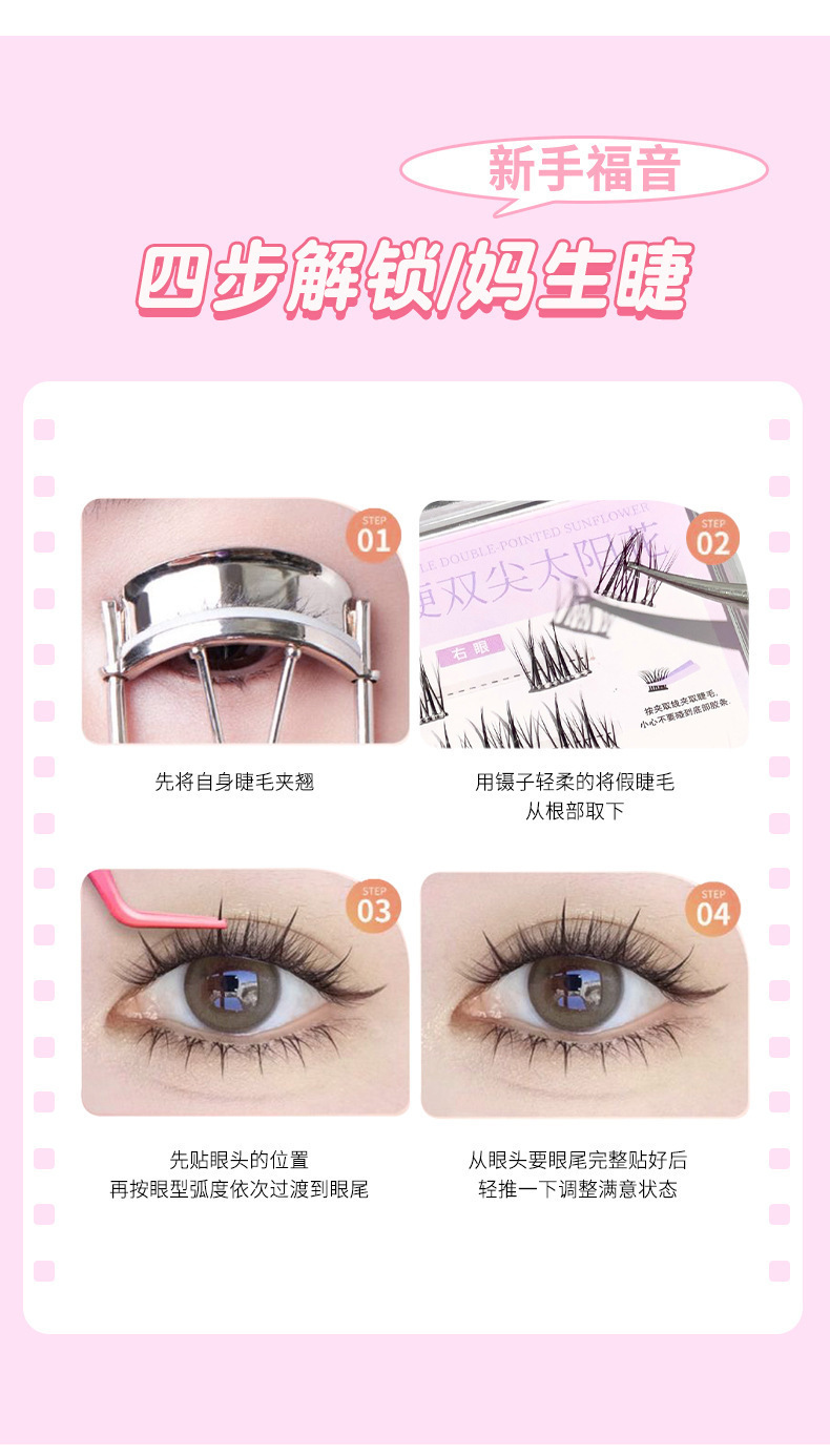 glue-free stemless false eyelashes novice natural soft double pointed sunflower single cluster comic eyelash 中文版