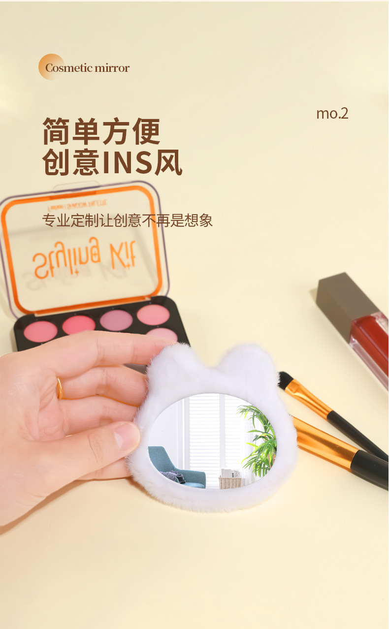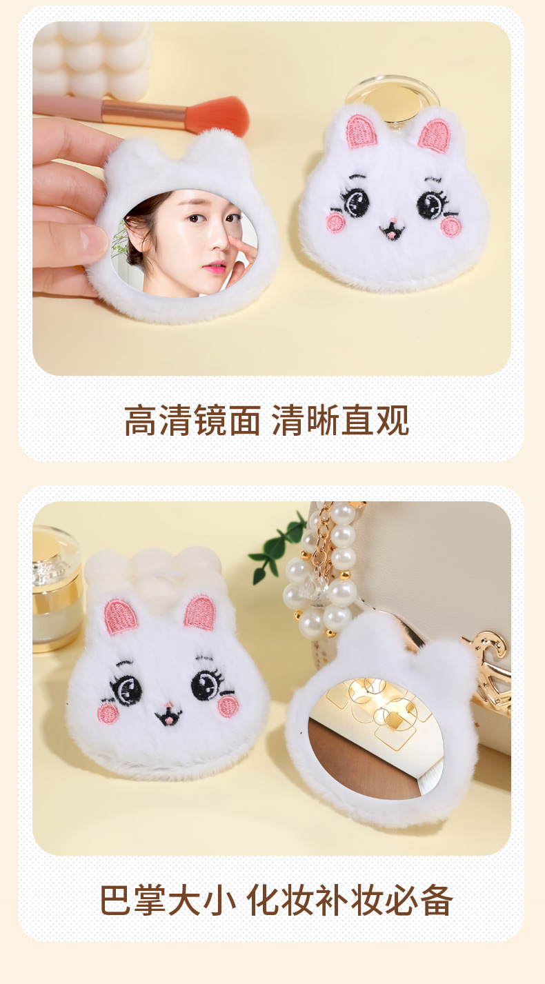 cartoon cute plush rabbit makeup mirror portable storage bag makeup mirror doll mirror diy custom manufacturer 中文版
