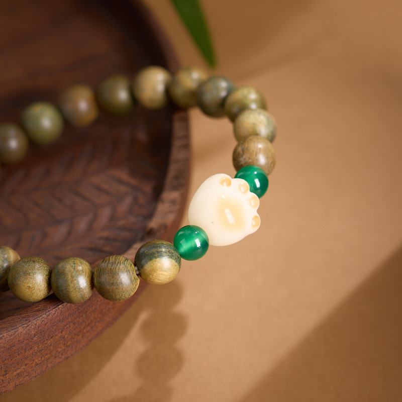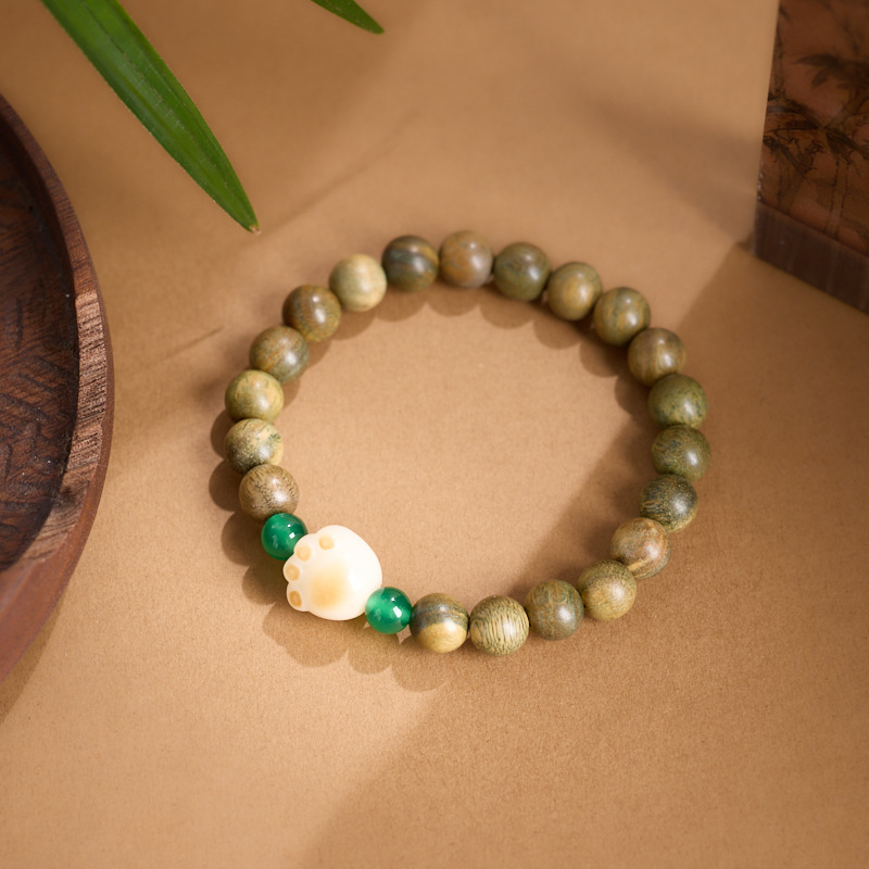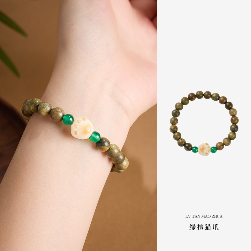 Name8mm Green Sandalwood, Green Agate, Charcoal Cat's Claw BraceletThe Green Sandalwood Series - Cat's Paw Bracelet with Bodhi Charcoal