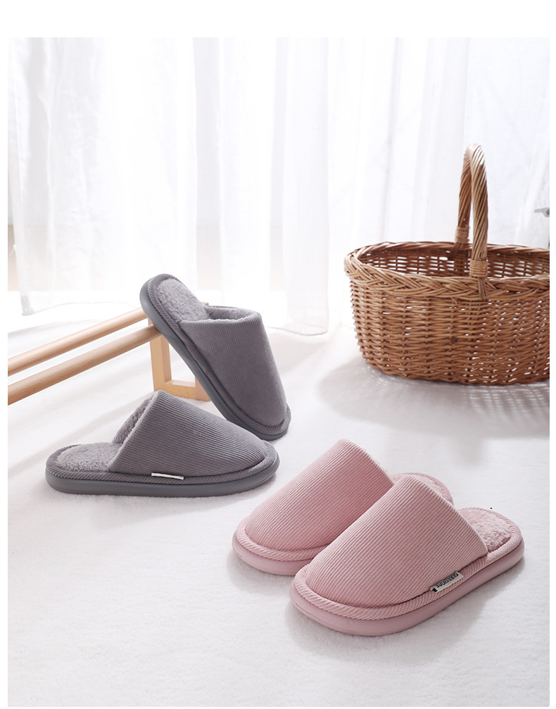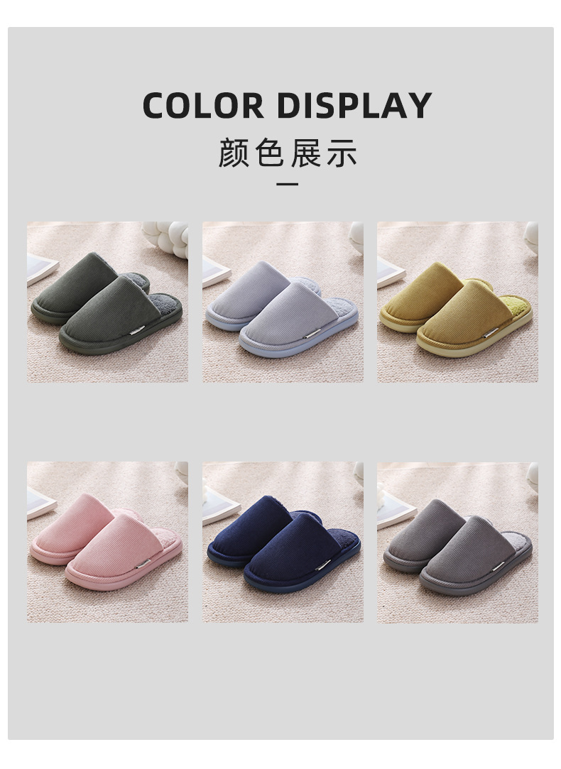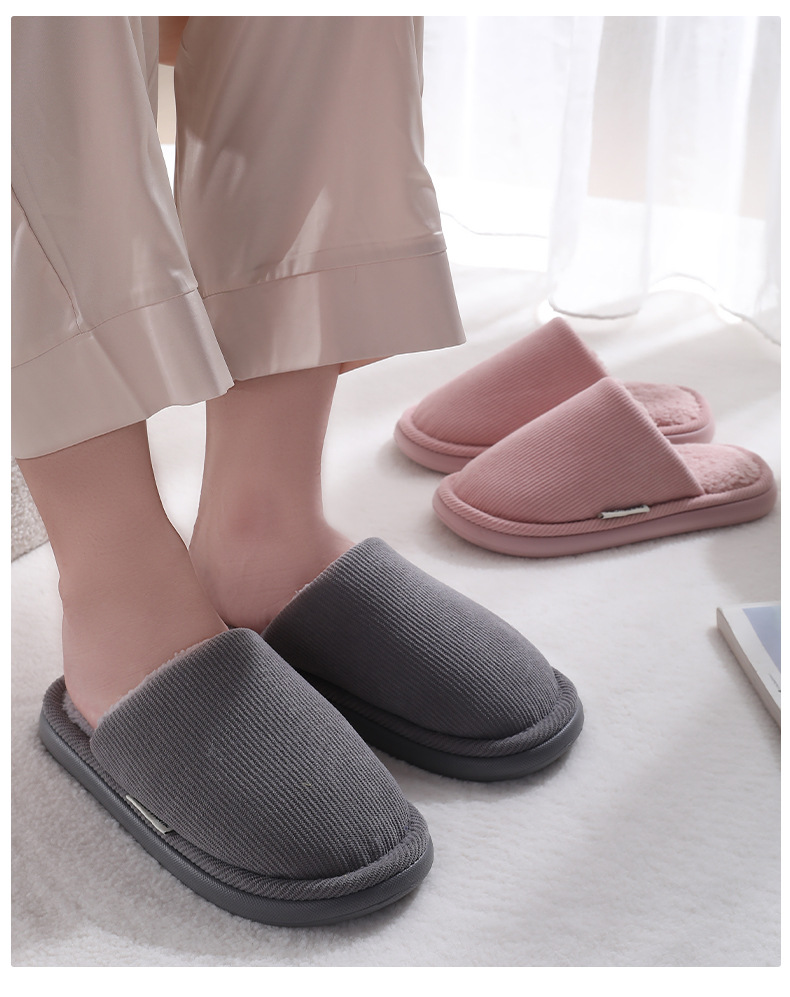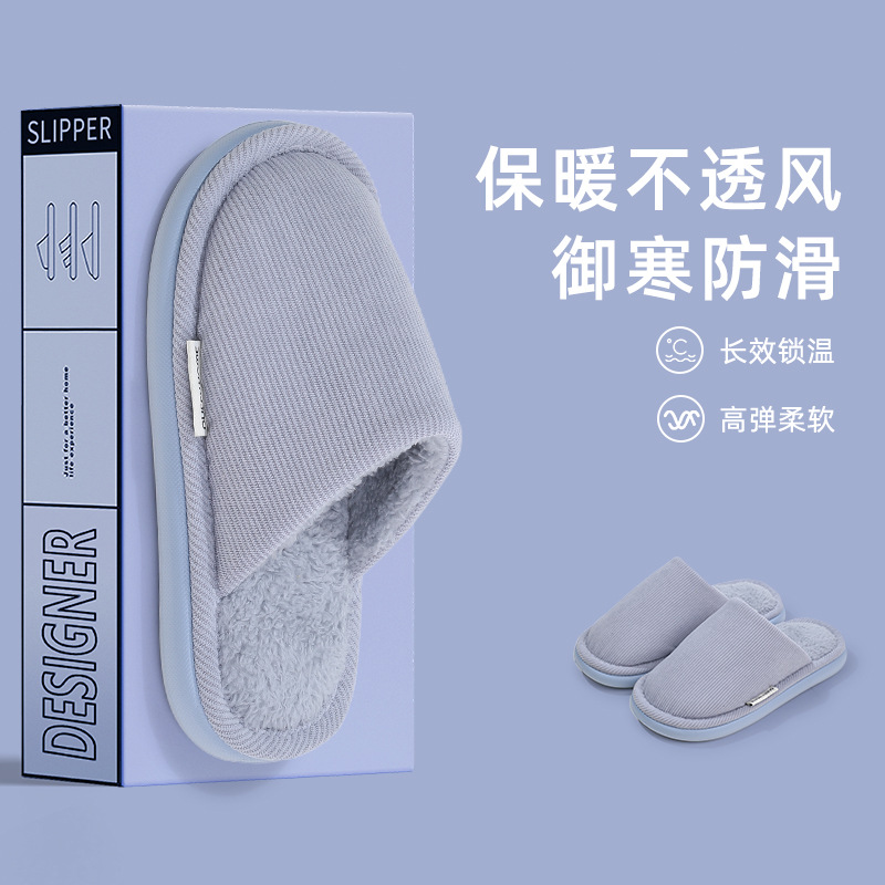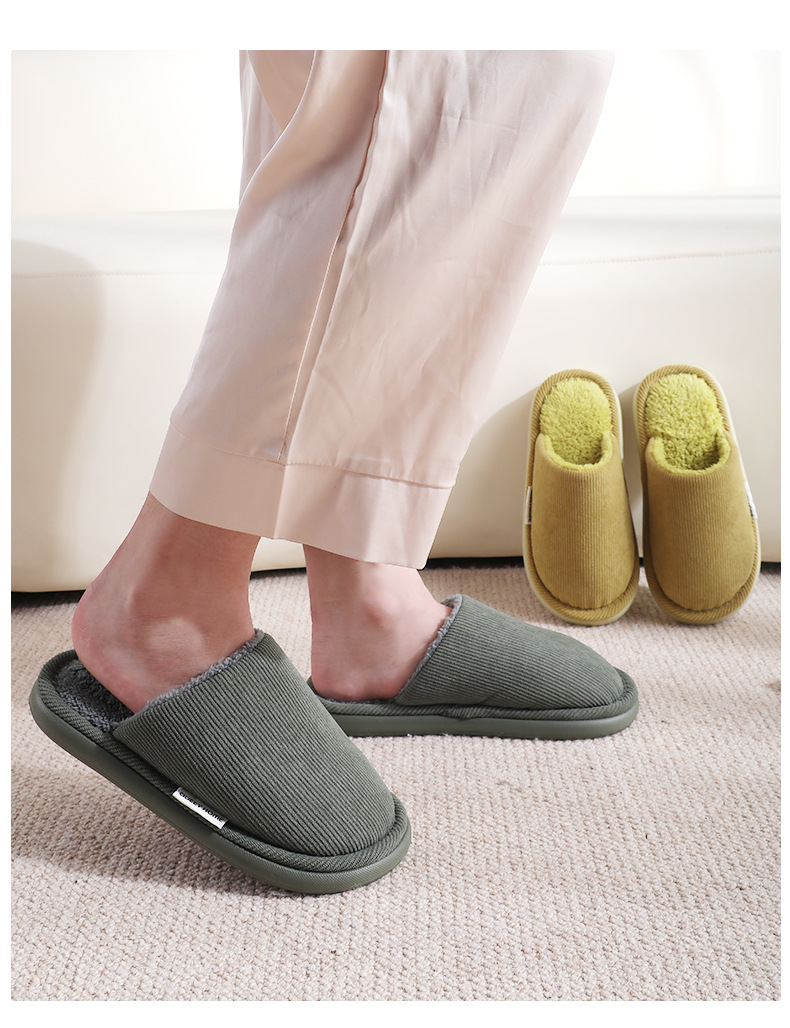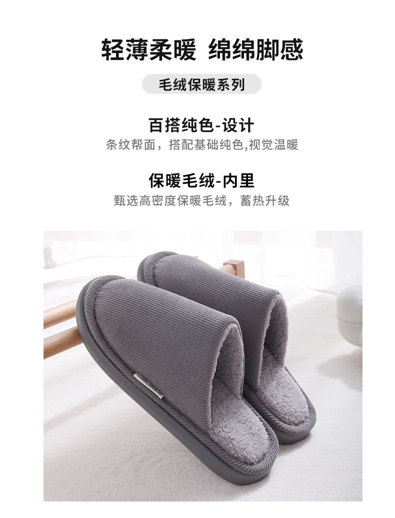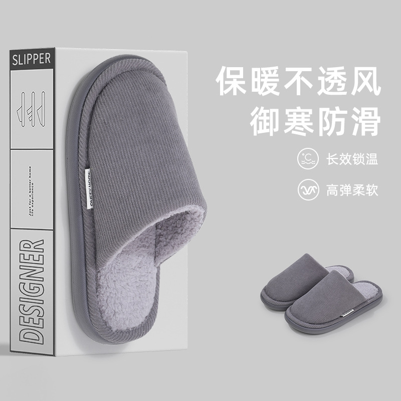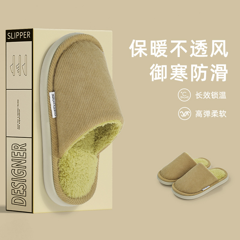 new thick-soled cotton slippers men's autumn and winter latex non-slip warm fleece-lined indoor home cotton slippers women's 中文版