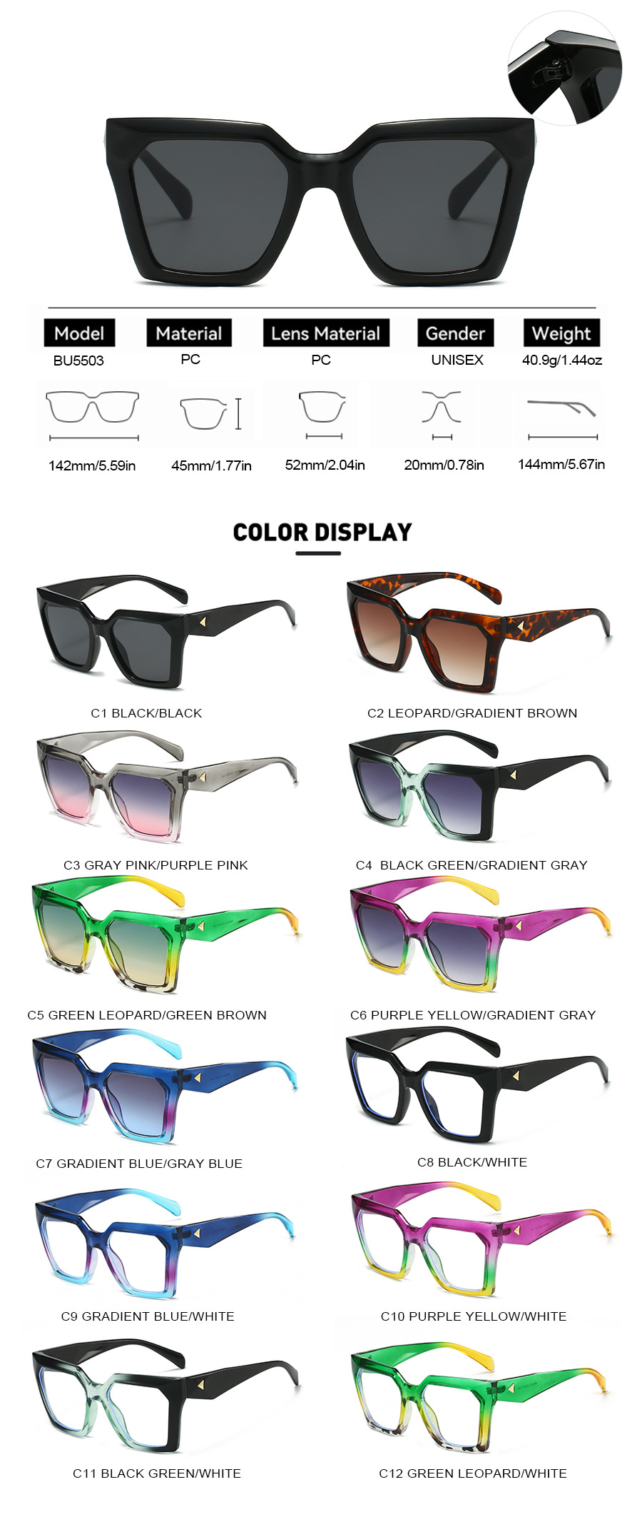 black frame black and grey lens