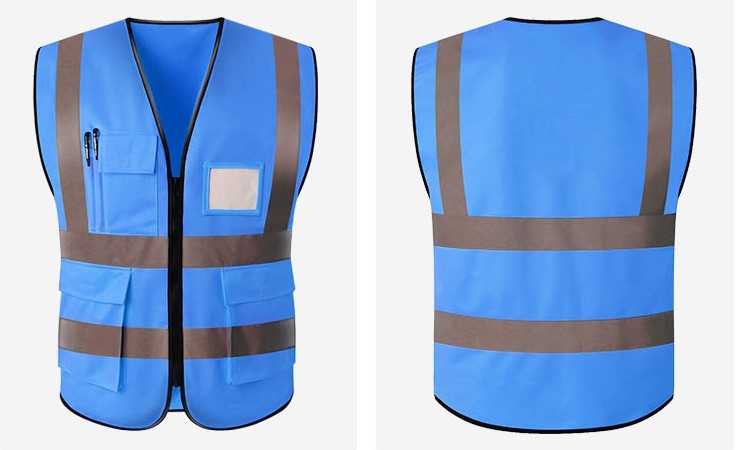 reflective * vest * multi-pocket * lake blue * dark gray highlight * free size