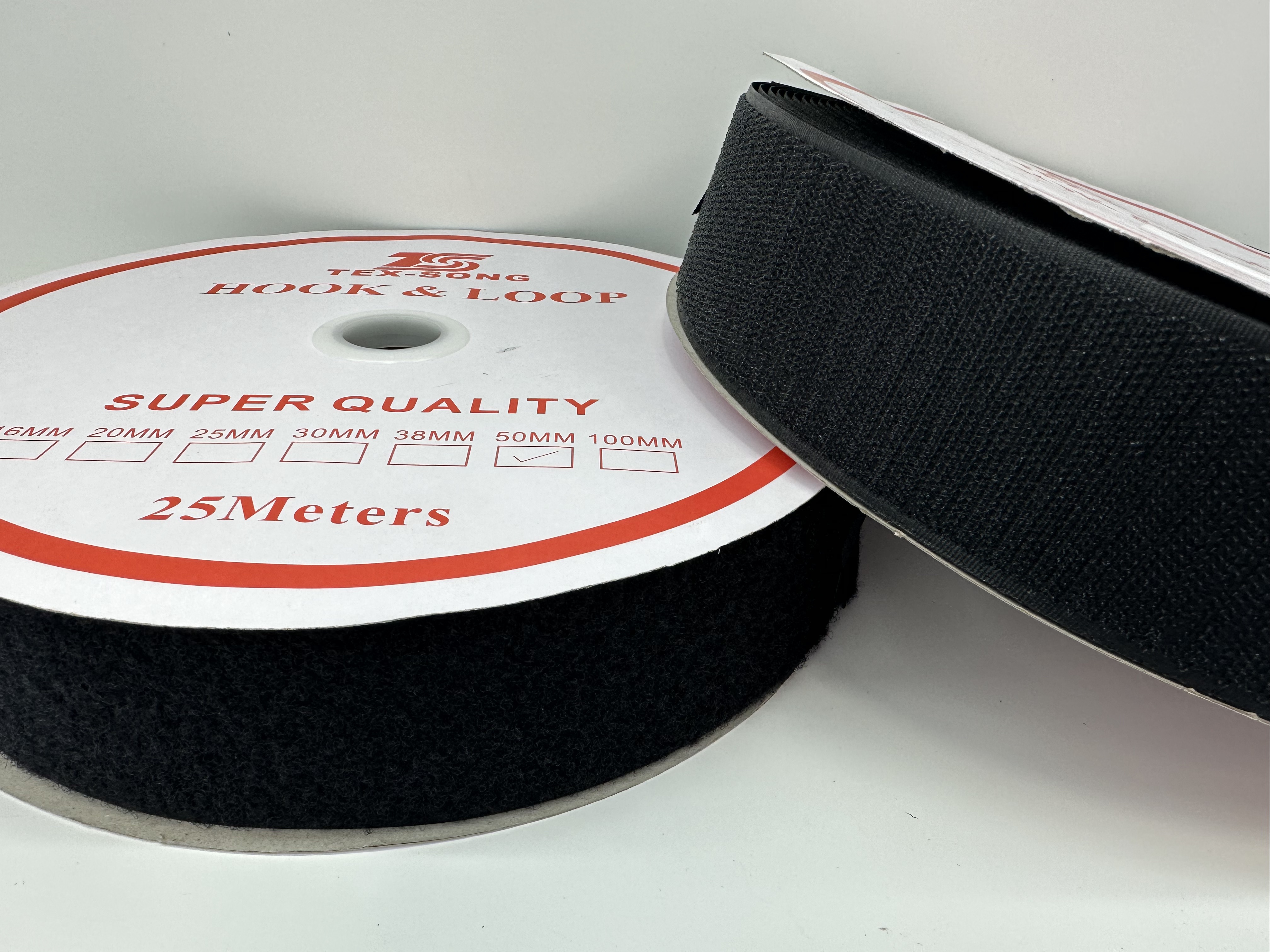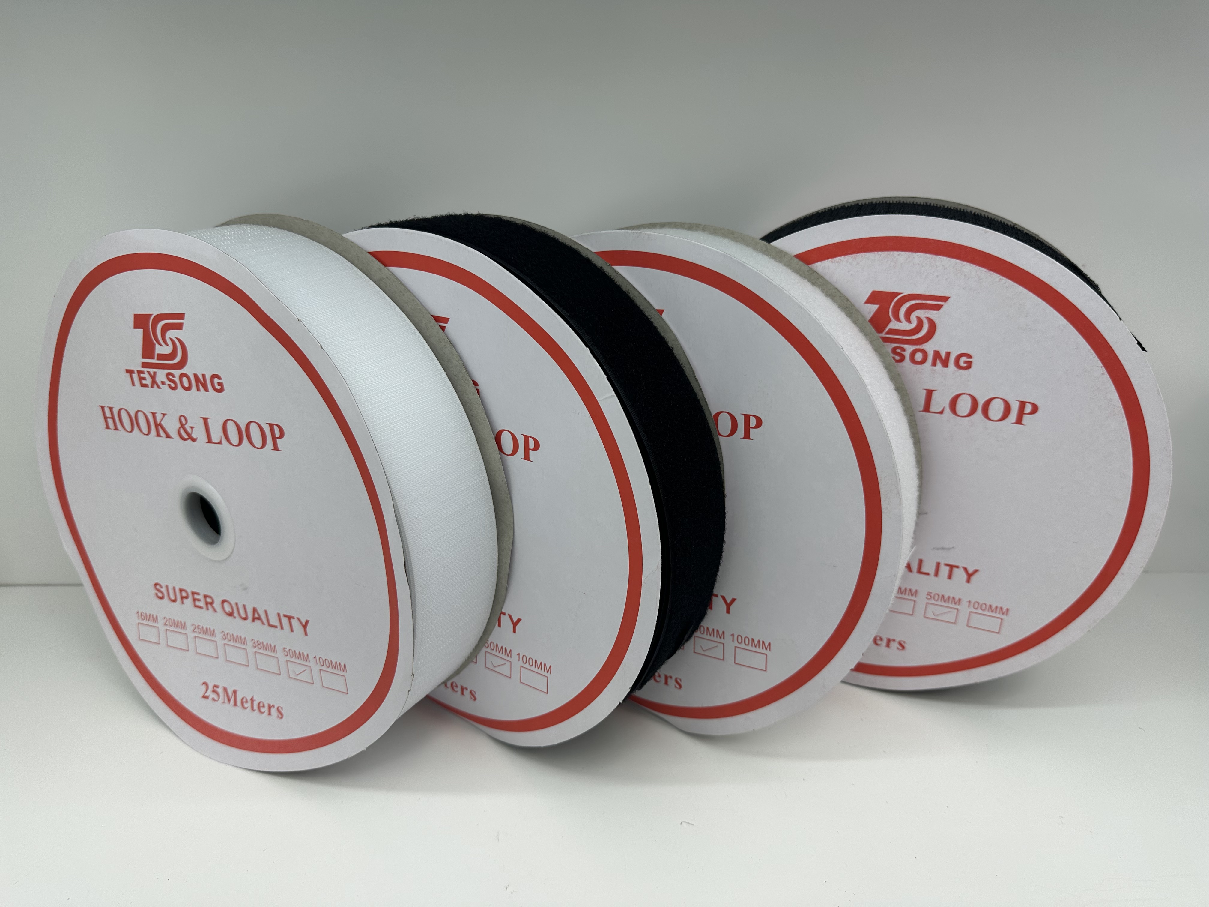 Velcro bands, also known as hook and loop fasteners. The main materials include nylon (Grade A), nylon and polyester blend (Grade B), and polyester (Grade C). The standard sizes range from 1.5 to 10 cm.
