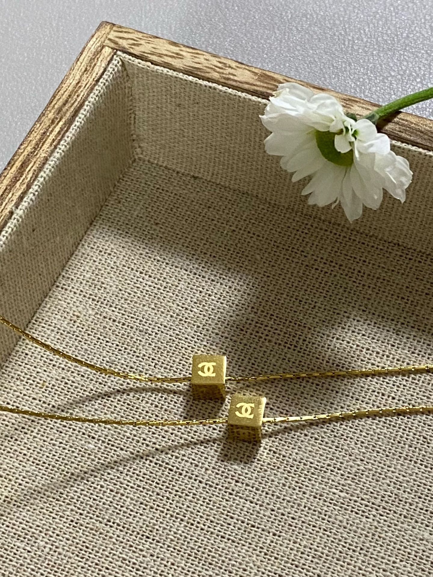 gold small square necklace