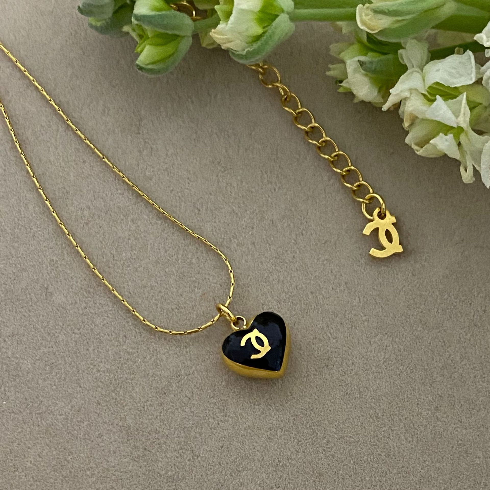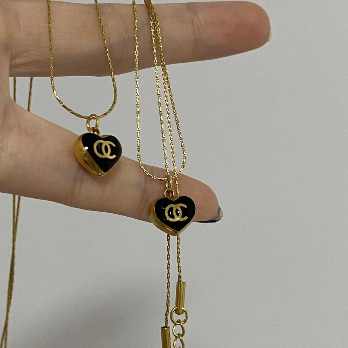 gold black heart classic style necklace