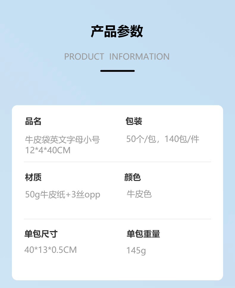 kraft paper + transparent plastic; small size english letters kraft paper bag 12*4 * 40cm 50 pcs/bag
