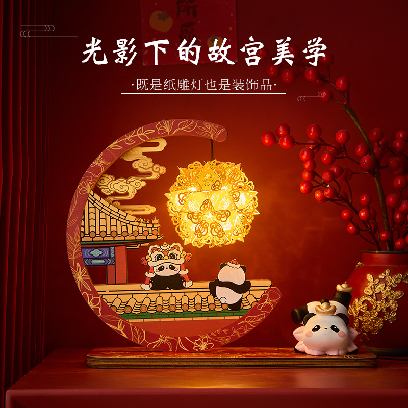 y-the forbidden city panda paper-cut light box