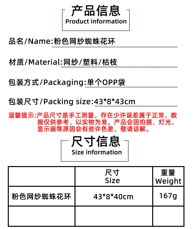 pink mesh spider garland