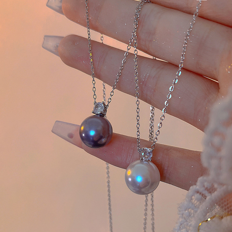 1674# gray pearl zircon necklace