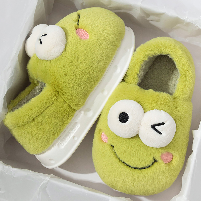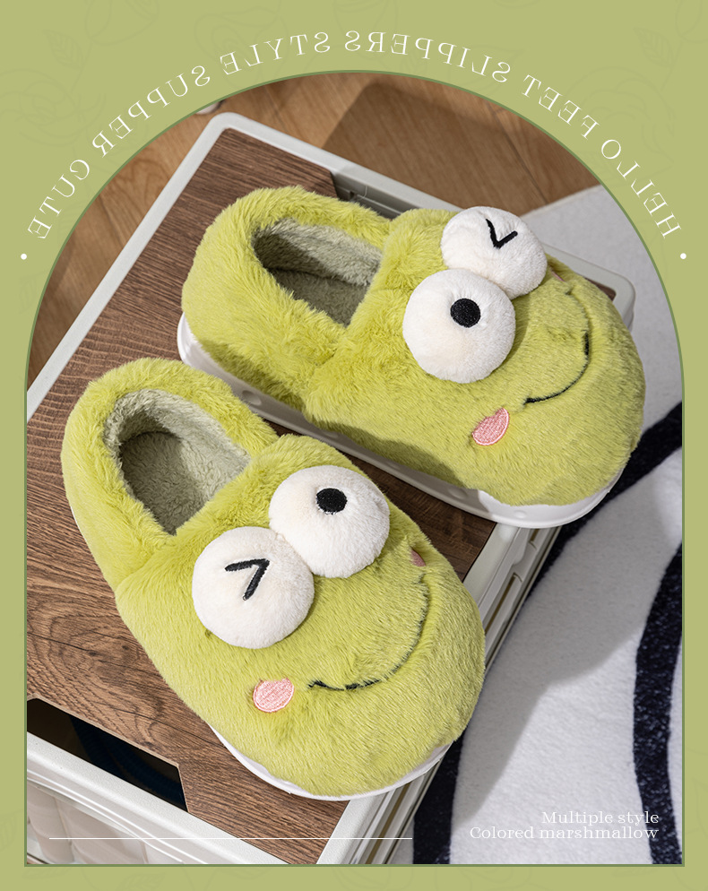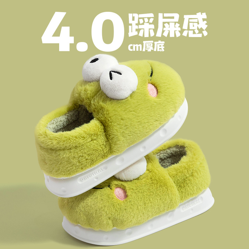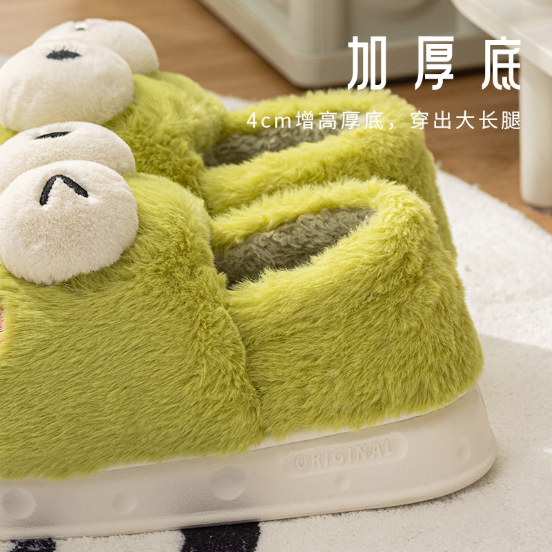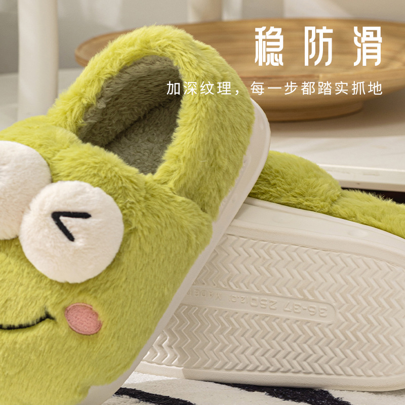 frog-shaped wallet heel cotton slippers women's autumn and winter indoor home non-slip keep warm outerwear 2024 new cotton slippers women's autumn and winter 中文版